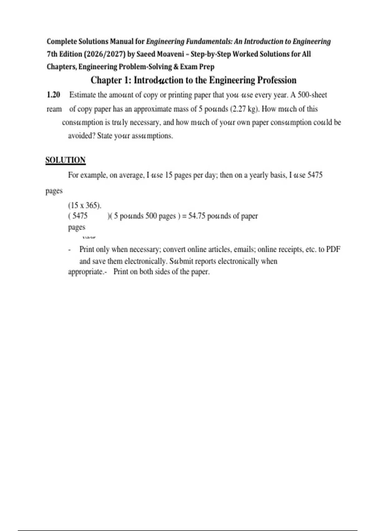 Complete Solutions Manual for Engineering Fundamentals: An Introduction to Engineering 7th Edition (2026/2027) by Saeed Moaveni – Step-by-Step Worked Solutions for All Chapters, Engineering Problem-Solving & Exam Prep
