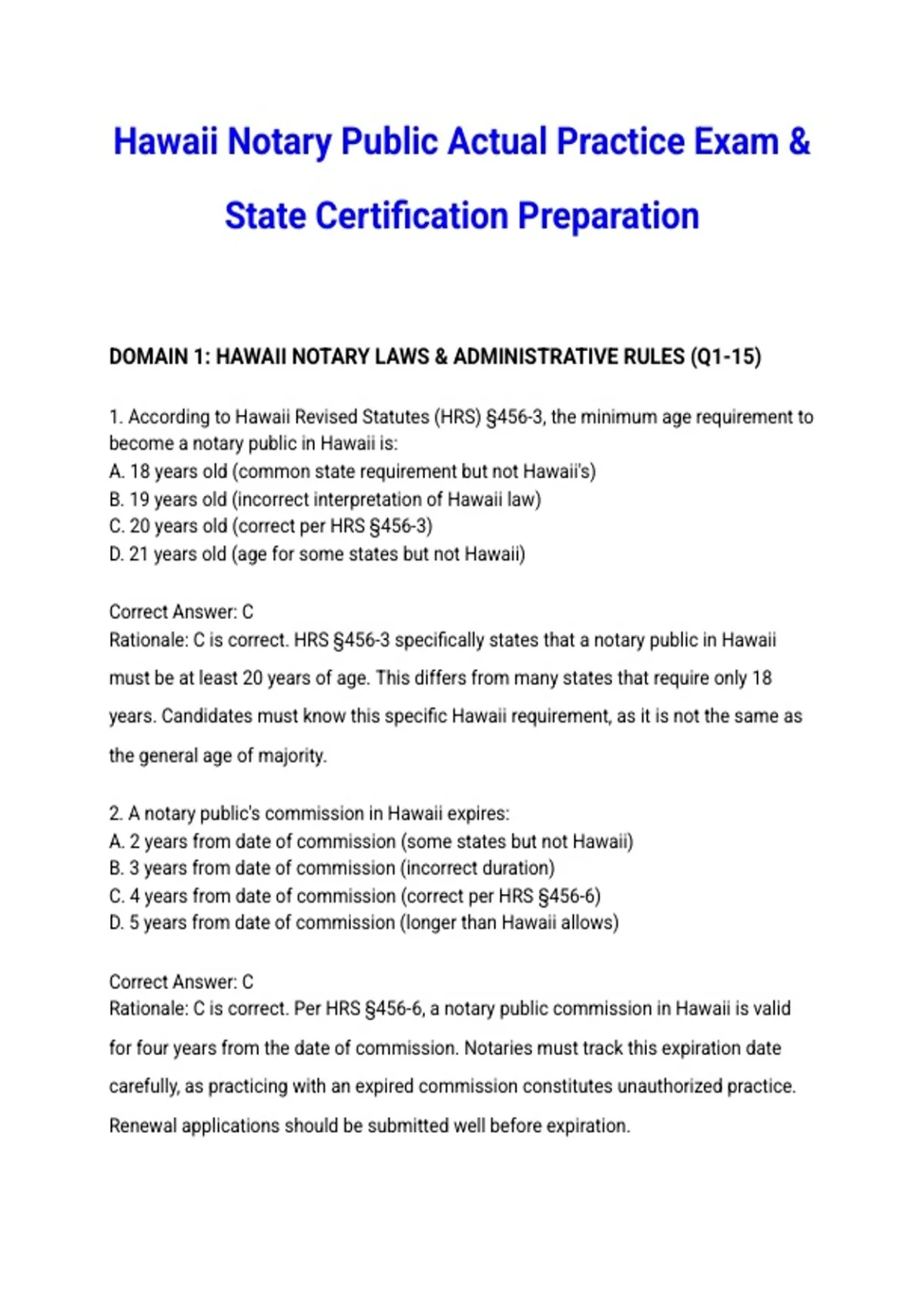 DOMAIN 1: HAWAII NOTARY LAWS & ADMINISTRATIVE RULES (Q1-15)