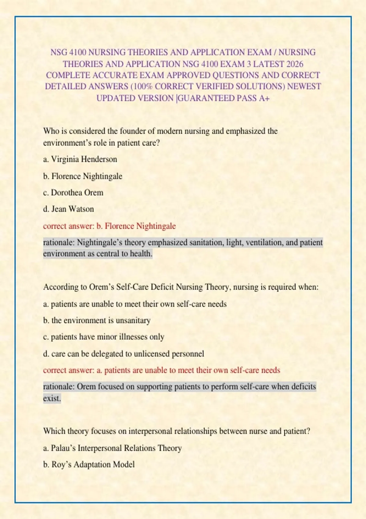 THEORIES AND APPLICATION NSG 4100 EXAM 3 LATEST 2026