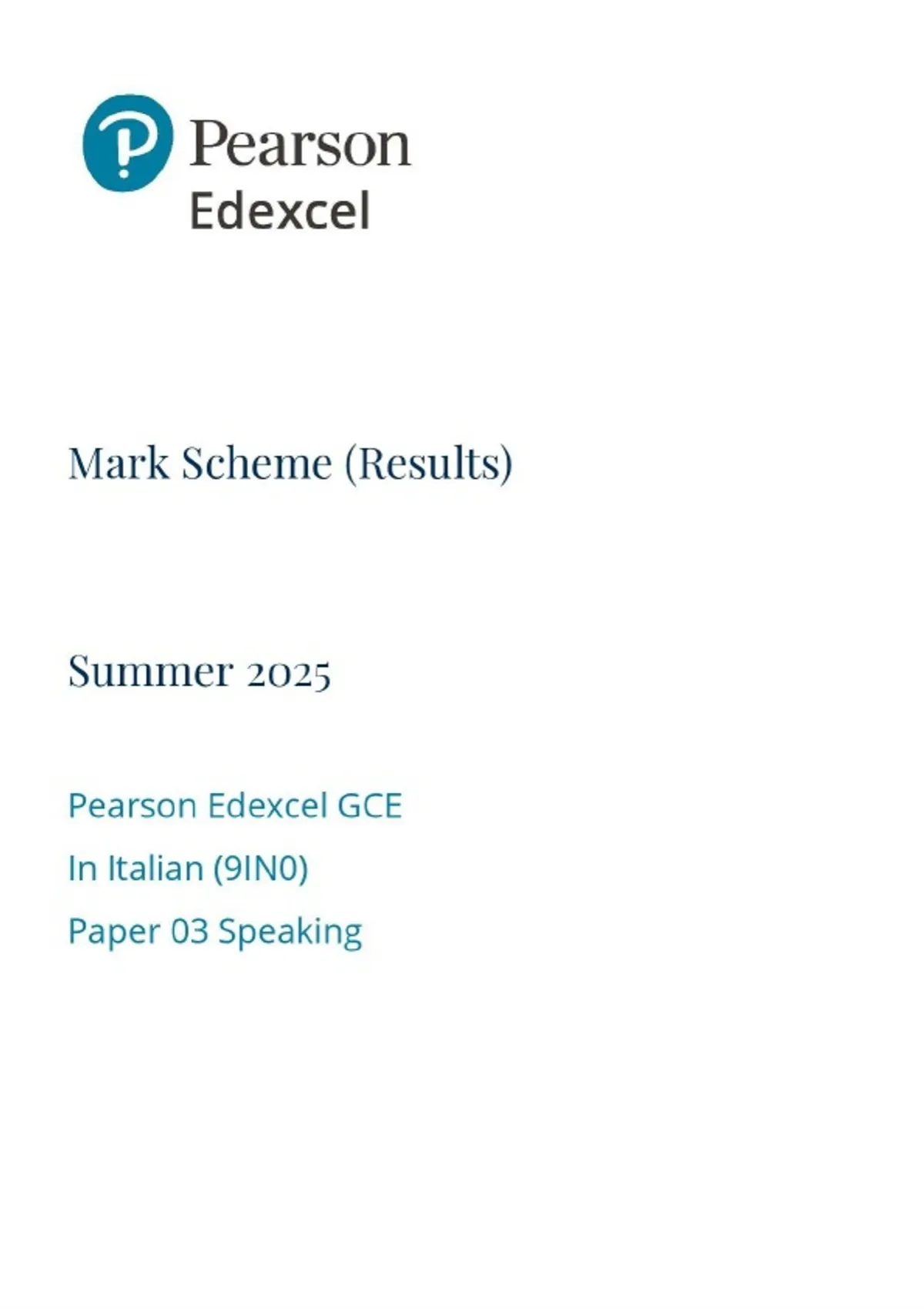 Pearson Edexcel GCE In Italian (9IN0) Paper 03 Speaking