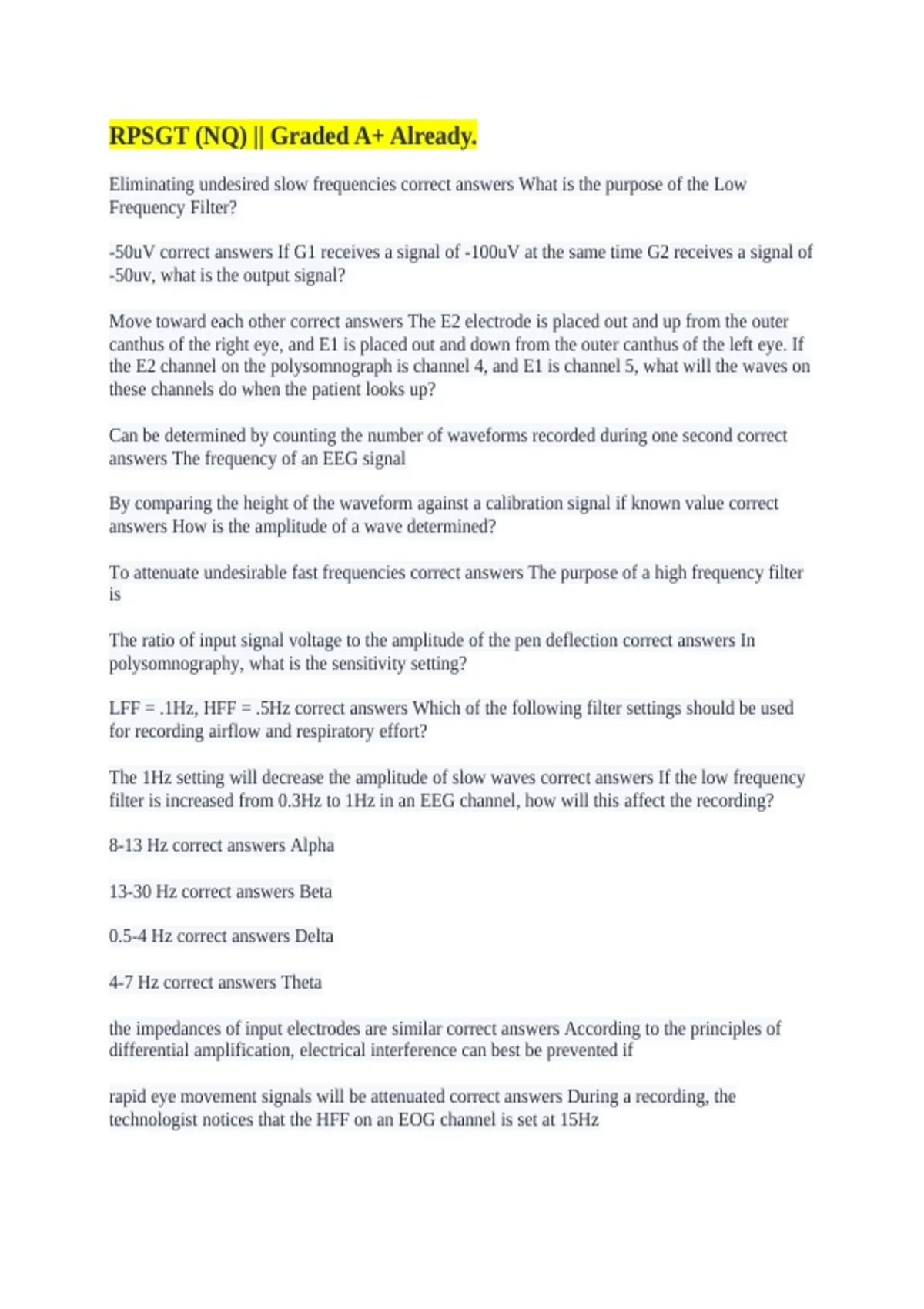 LFF = .1Hz, HFF = .5Hz correct answers Which of the following filter settings should be used