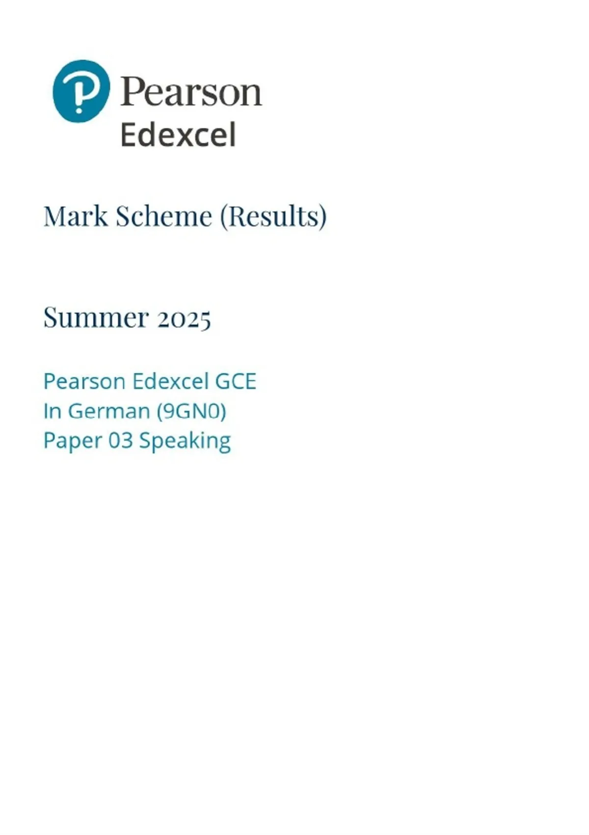 Pearson Edexcel GCE In German (9GN0) Paper 03 Speaking