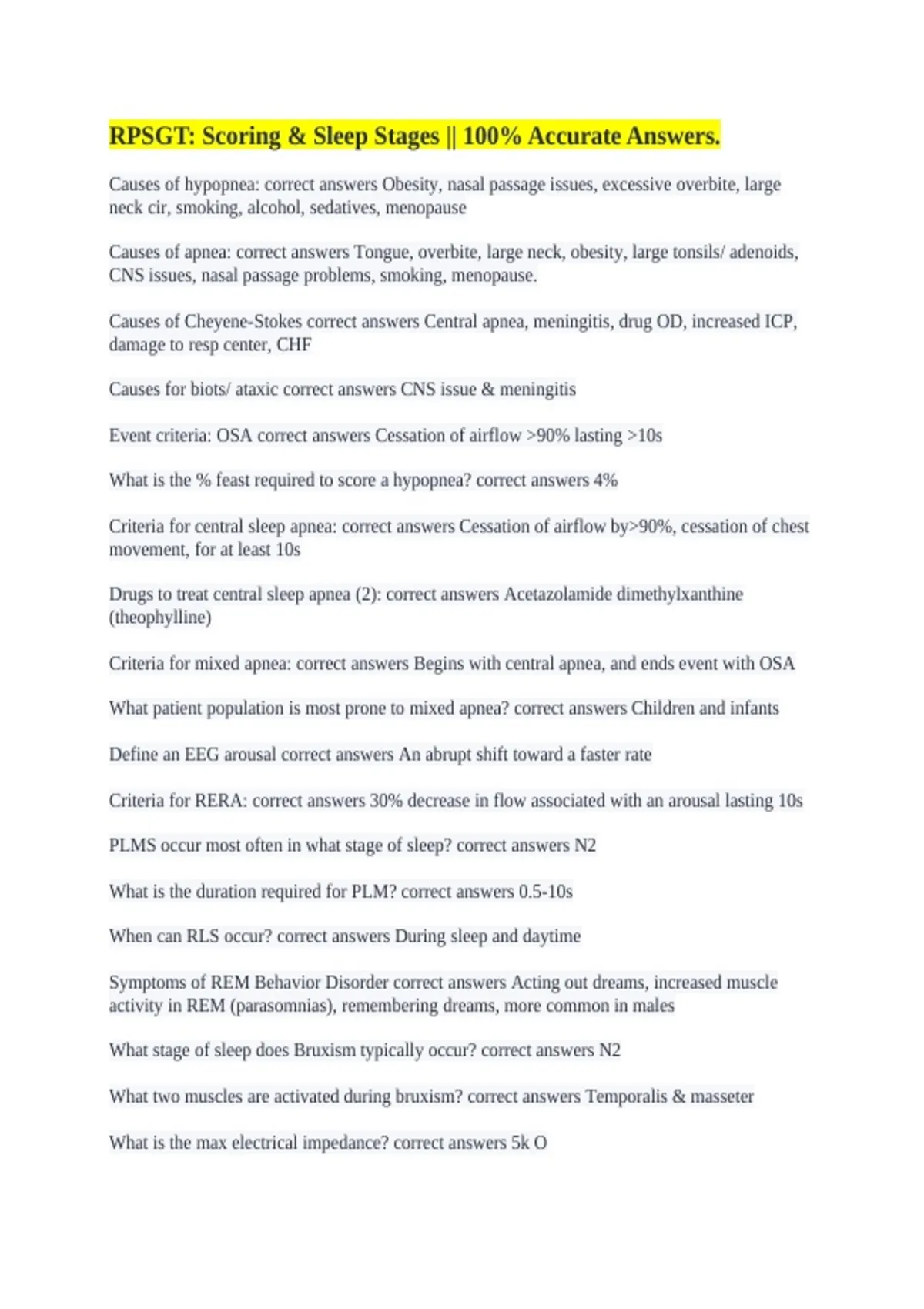 RPSGT: Scoring & Sleep Stages || 100% Accurate Answers.