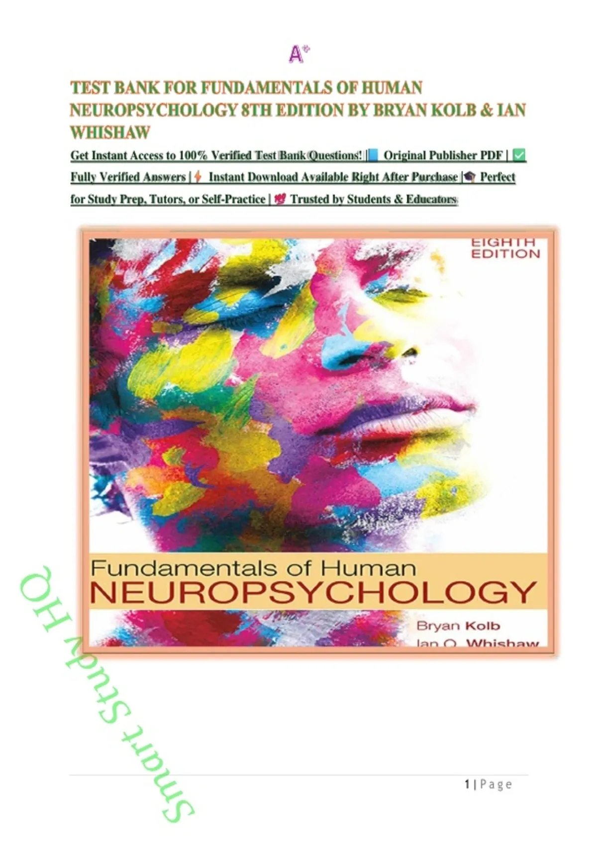 Test Bank for Fundamentals of Human Neuropsychology 8th Edition By Bryan Kolb, Ian Whishaw Test Bank for Fundamentals of Human Neuropsychology 8th Edition By Bryan Kolb, Ian Whishaw