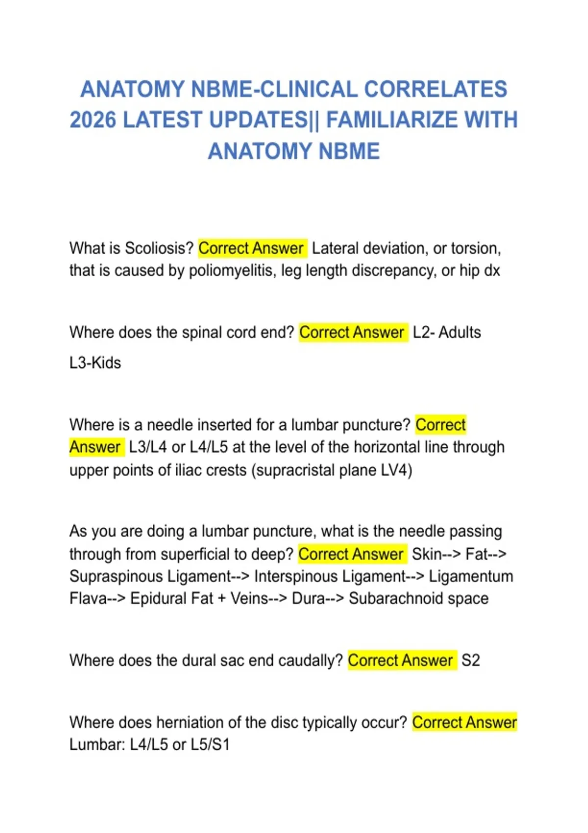 ANATOMY NBME-CLINICAL CORRELATES 2026