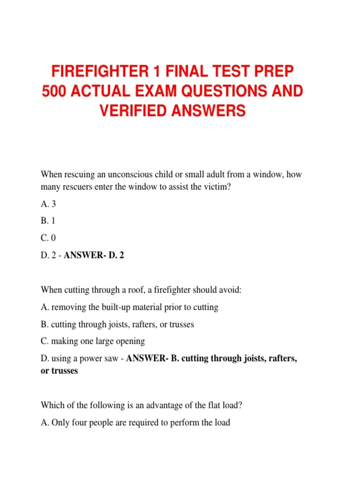 FIREFIGHTER 1 FINAL TEST PREP 500 ACTUAL EXAM QUESTIONS AND VERIFIED ANSWERSFIREFIGHTER 1 FINAL TEST PREP 500 ACTUAL EXAM QUESTIONS AND VERIFIED ANSWERSFIREFIGHTER 1 FINAL TEST PREP 500 ACTUAL EXAM QUESTIONS AND VERIFIED ANSWERS