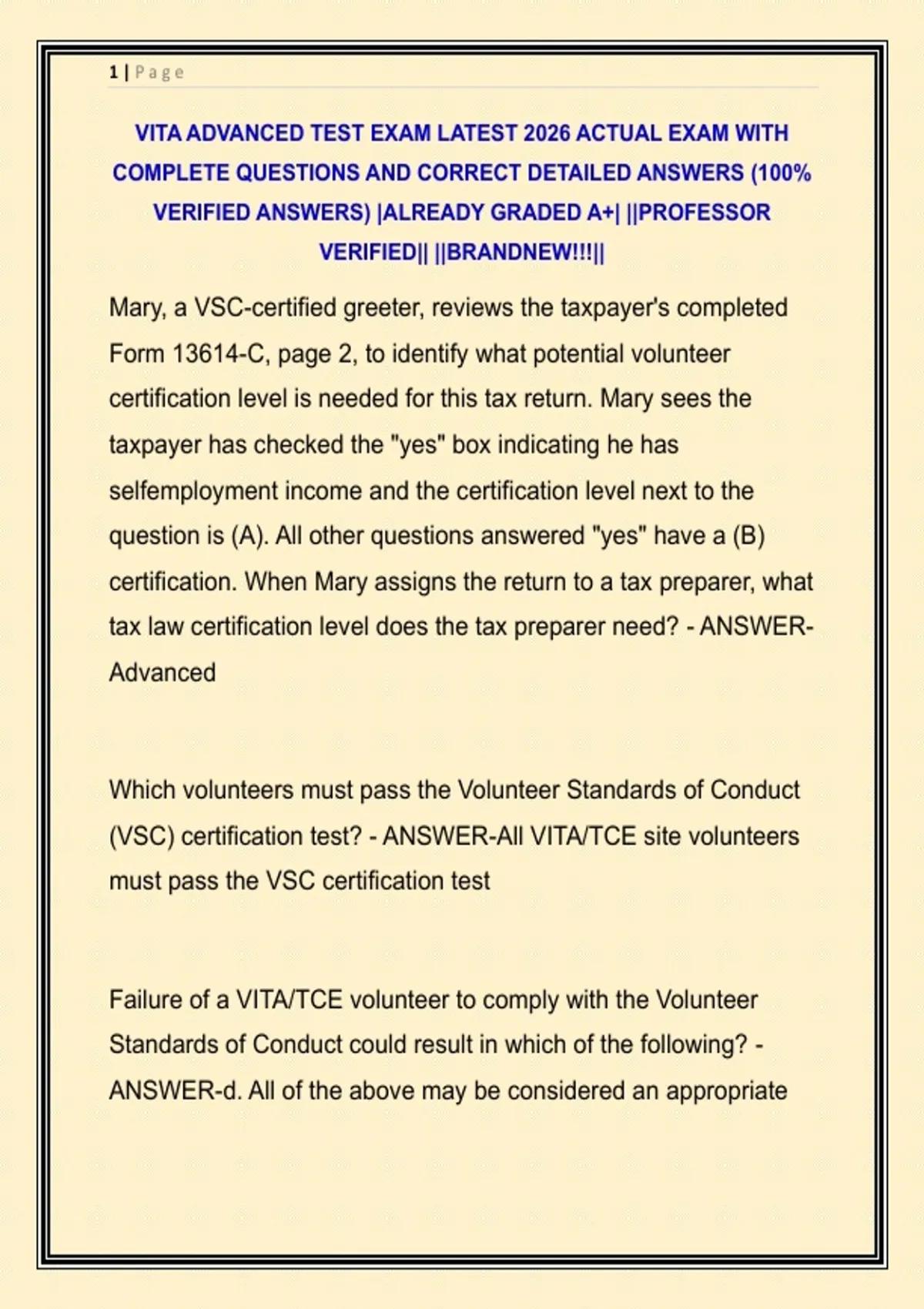 VITA ADVANCED TEST EXAM LATEST 2026 ACTUAL EXAM WITH
