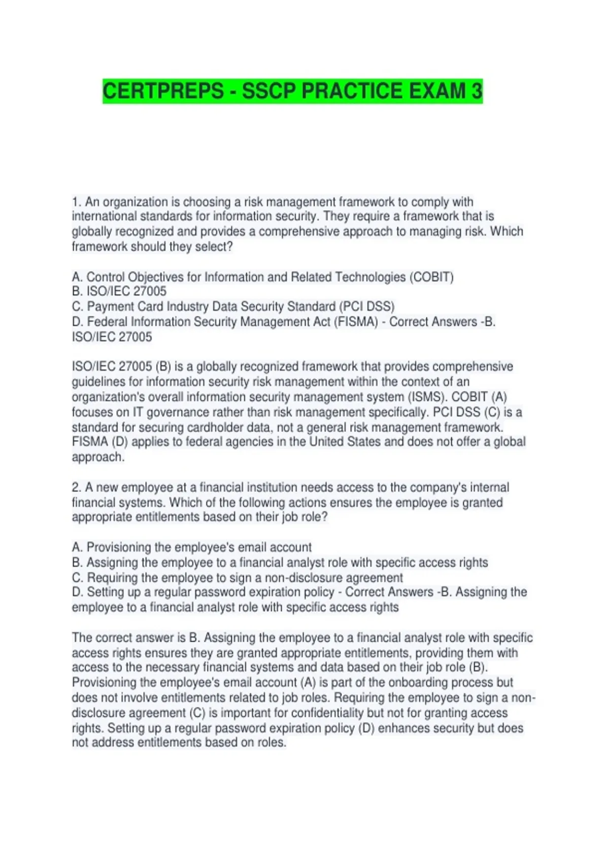 CERTPREPS - SSCP PRACTICE EXAM 3 QUESTIONS AND ANSWERS | GRADED A