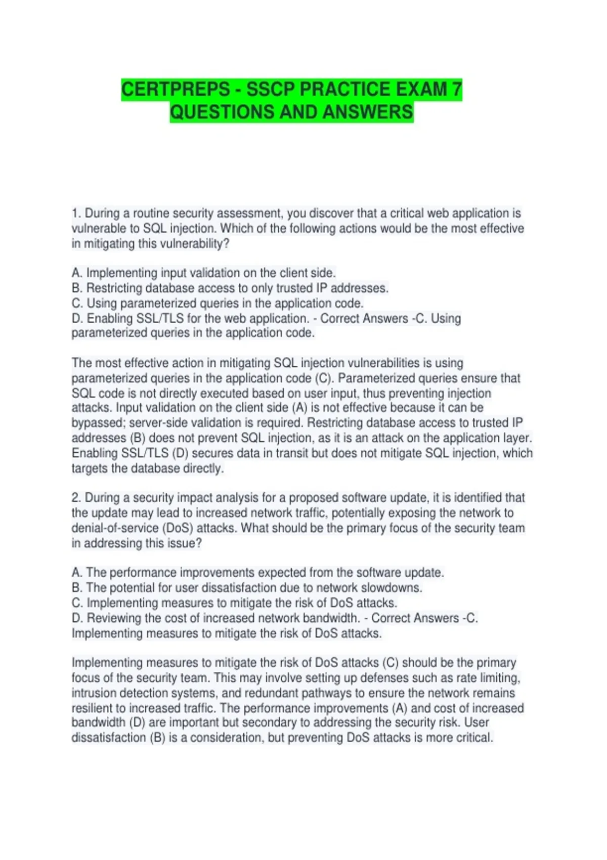 CERTPREPS - SSCP PRACTICE EXAM 7 QUESTIONS AND ANSWERS