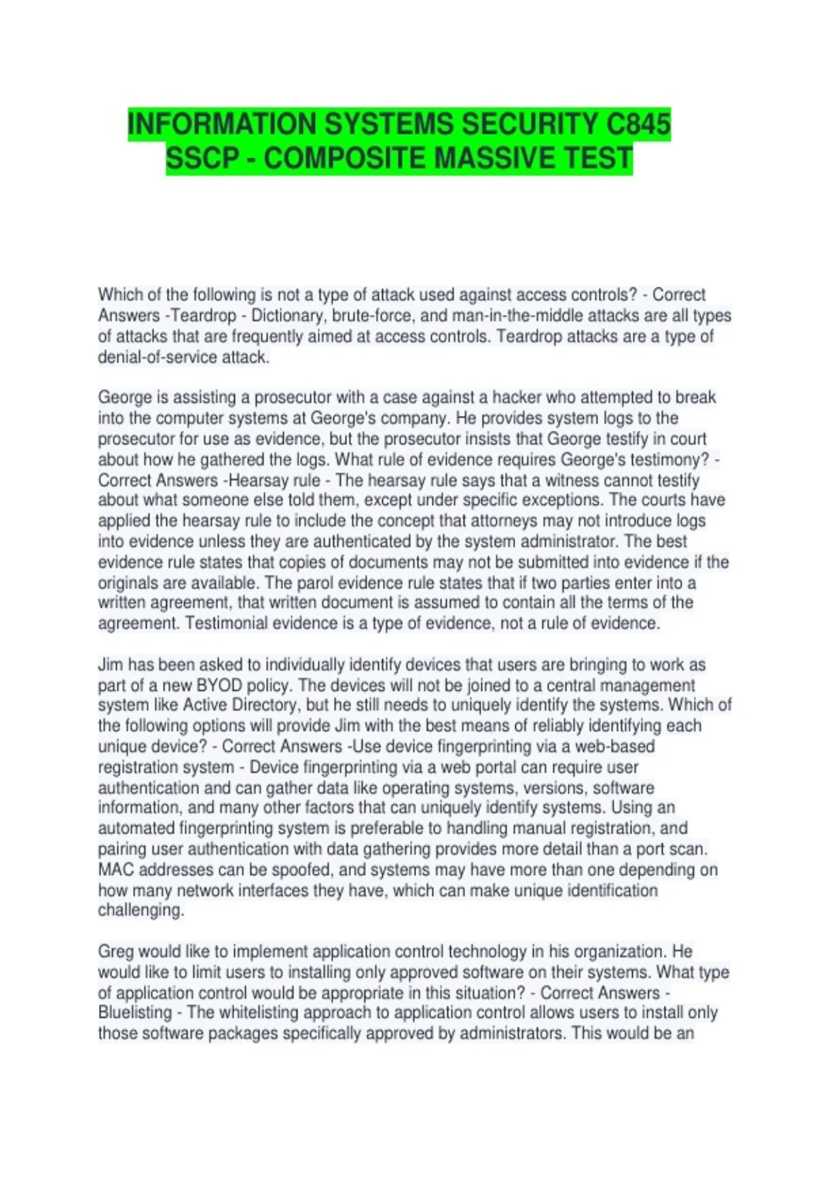 INFORMATION SYSTEMS SECURITY C845
