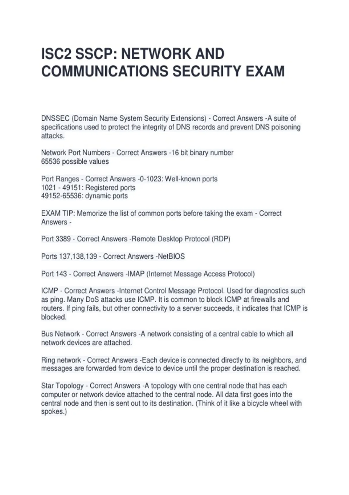 Port Ranges - Correct Answers -0-1023: Well-known ports