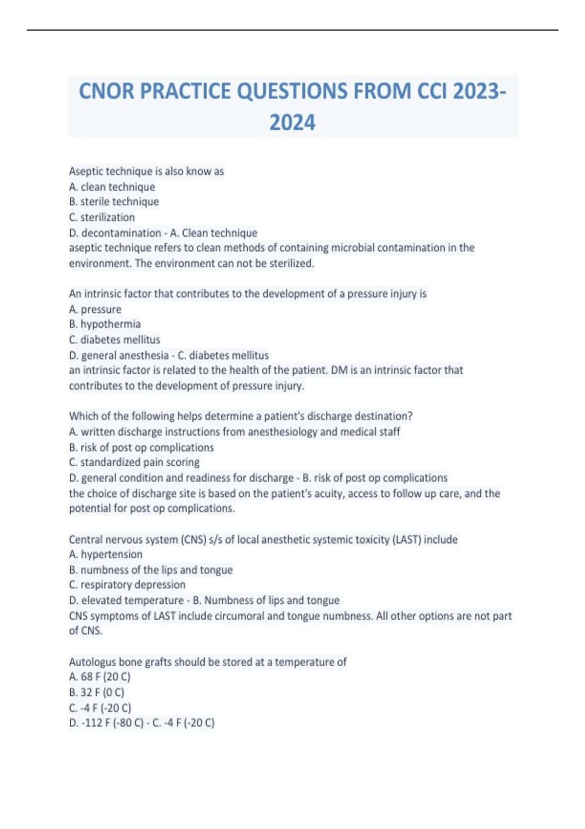 CNOR PRACTICE QUESTIONS FROM CCI 2023-2024 CNOR PRACTICE QUESTIONS FROM CCI 2023-2024 2/4/2026