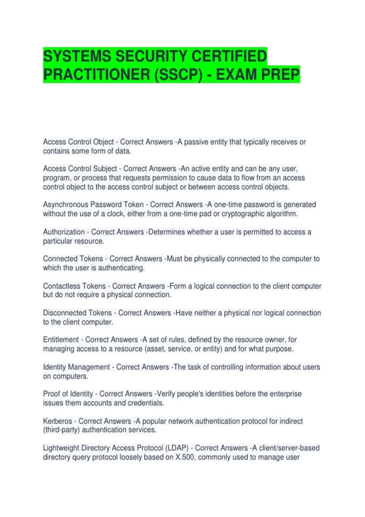 SYSTEMS SECURITY CERTIFIED PRACTITIONER (SSCP) - EXAM PREP QUESTIONS AND ANSWERS | FULLY SOLVED