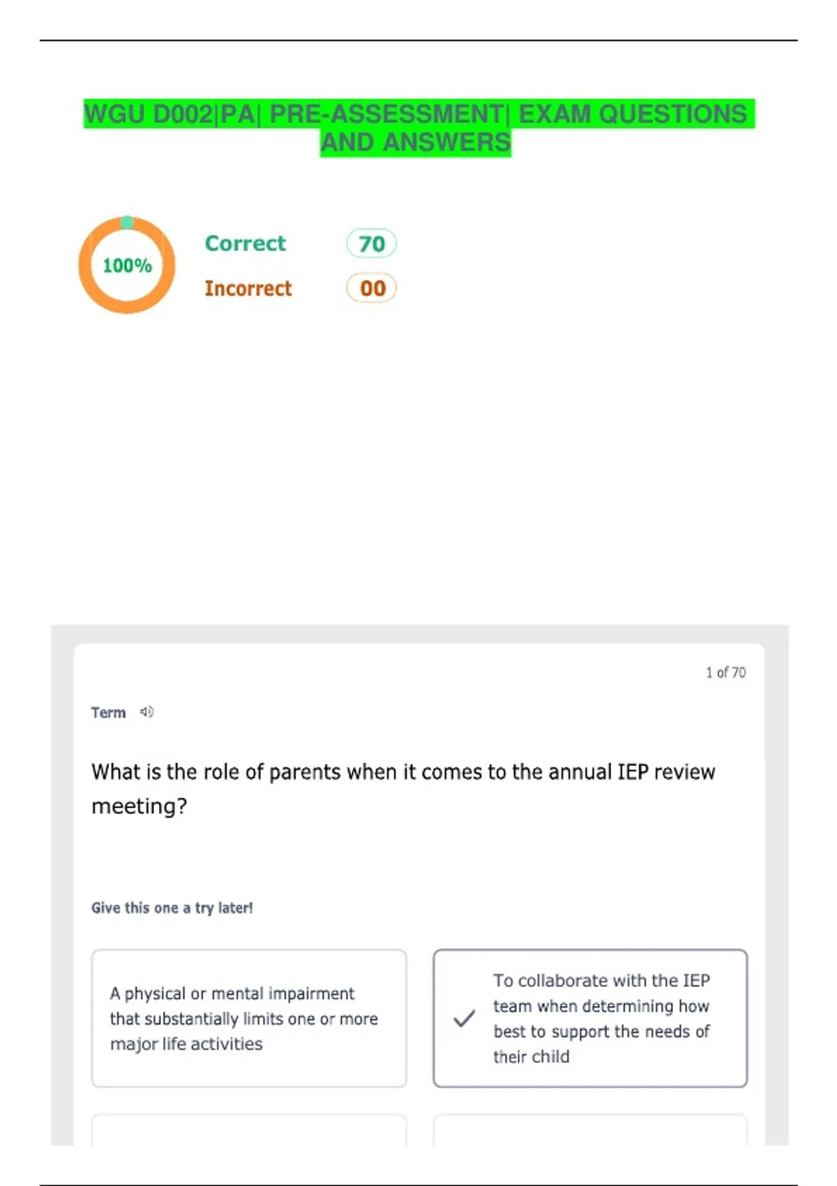 WGU D002|PA| PRE-ASSESSMENT| EXAM QUESTIONS