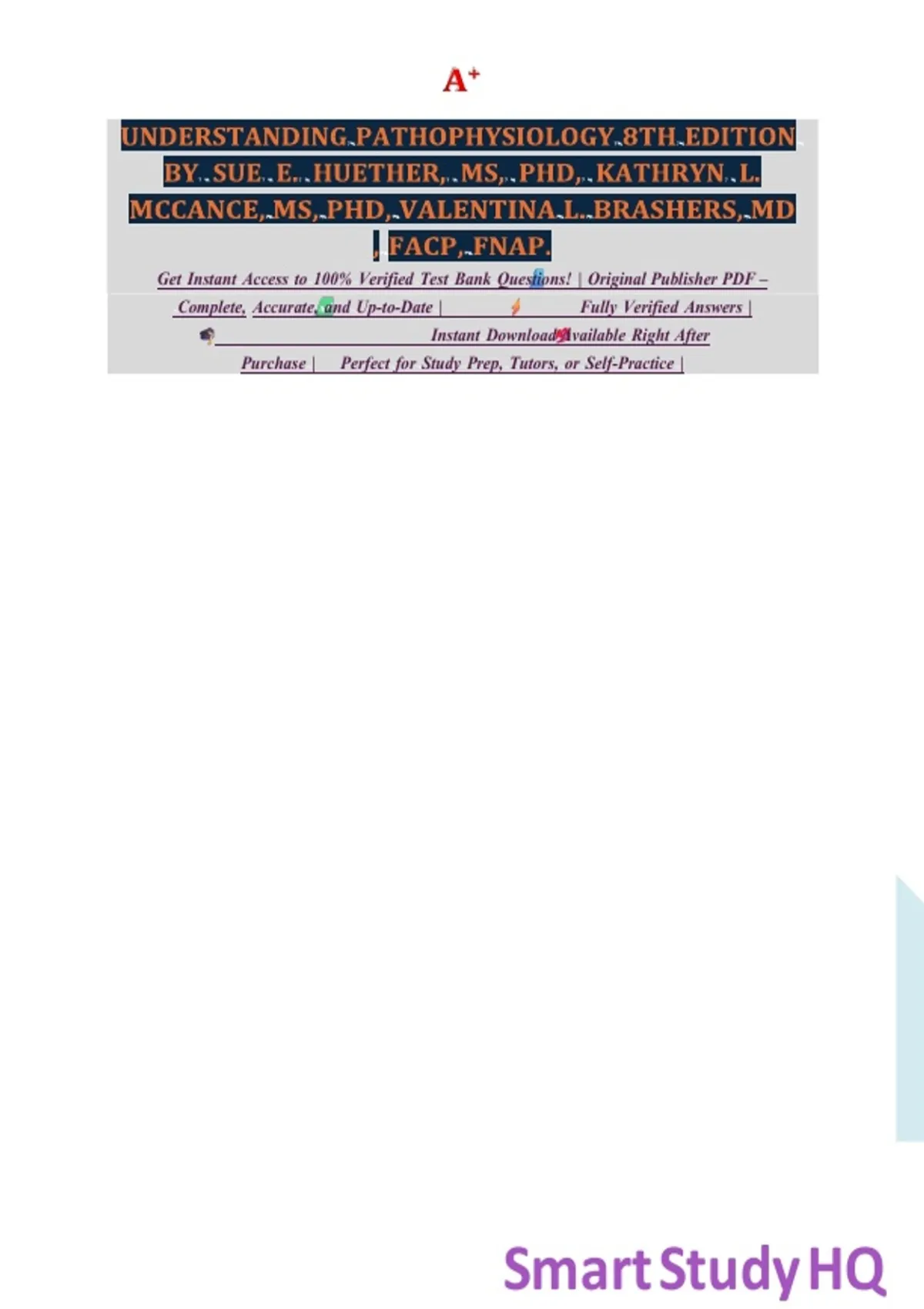 est Bank for Understanding Pathophysiology, 8th Edition by Sue E. Huether, Kathryn L. McCance and Valentina L. Brashers isbn-9780323937283
