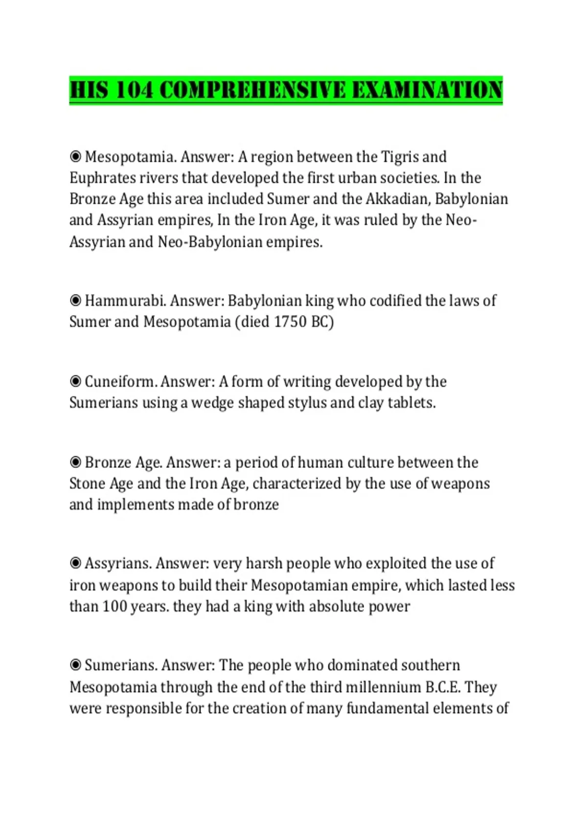 HIS 104 Comprehensive Examination