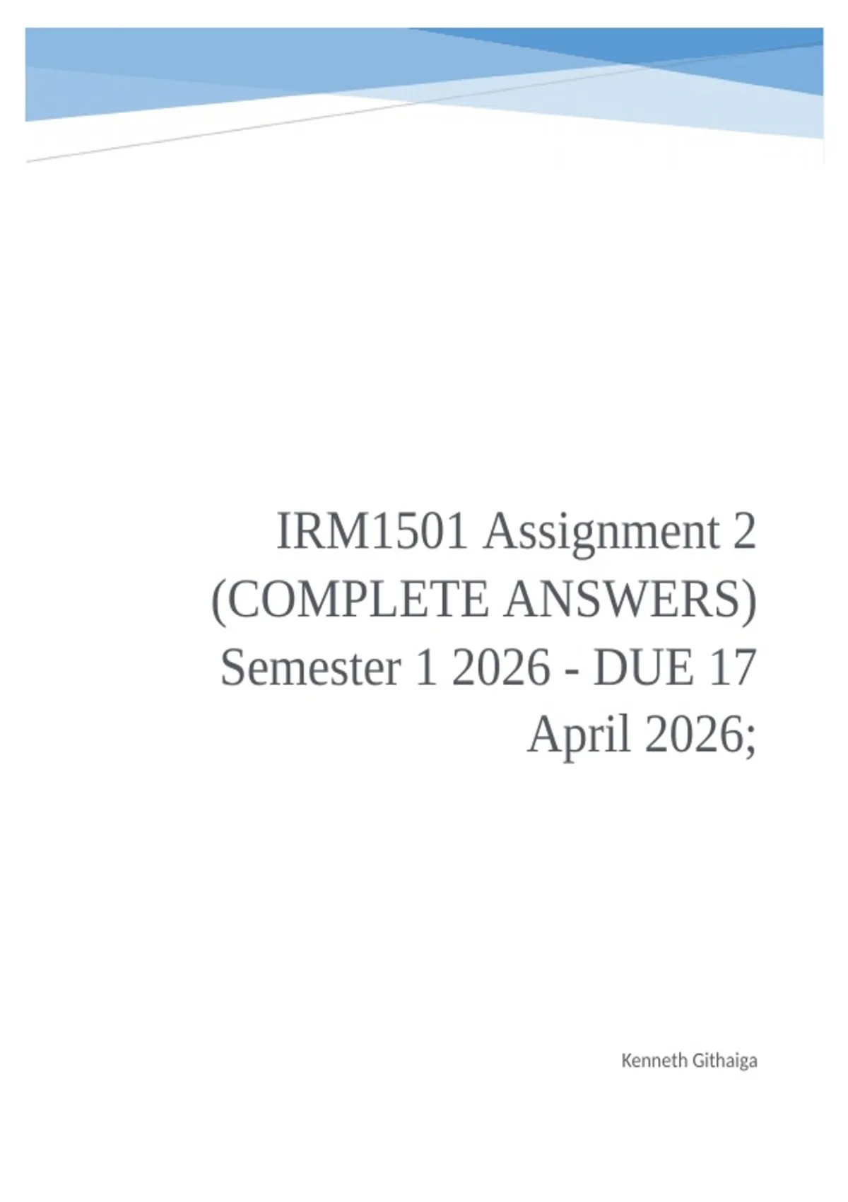 , IRM1501 Assignment 2 (COMPLETE ANSWERS) Semester 1 2026 - DUE 17 April 2026; Find