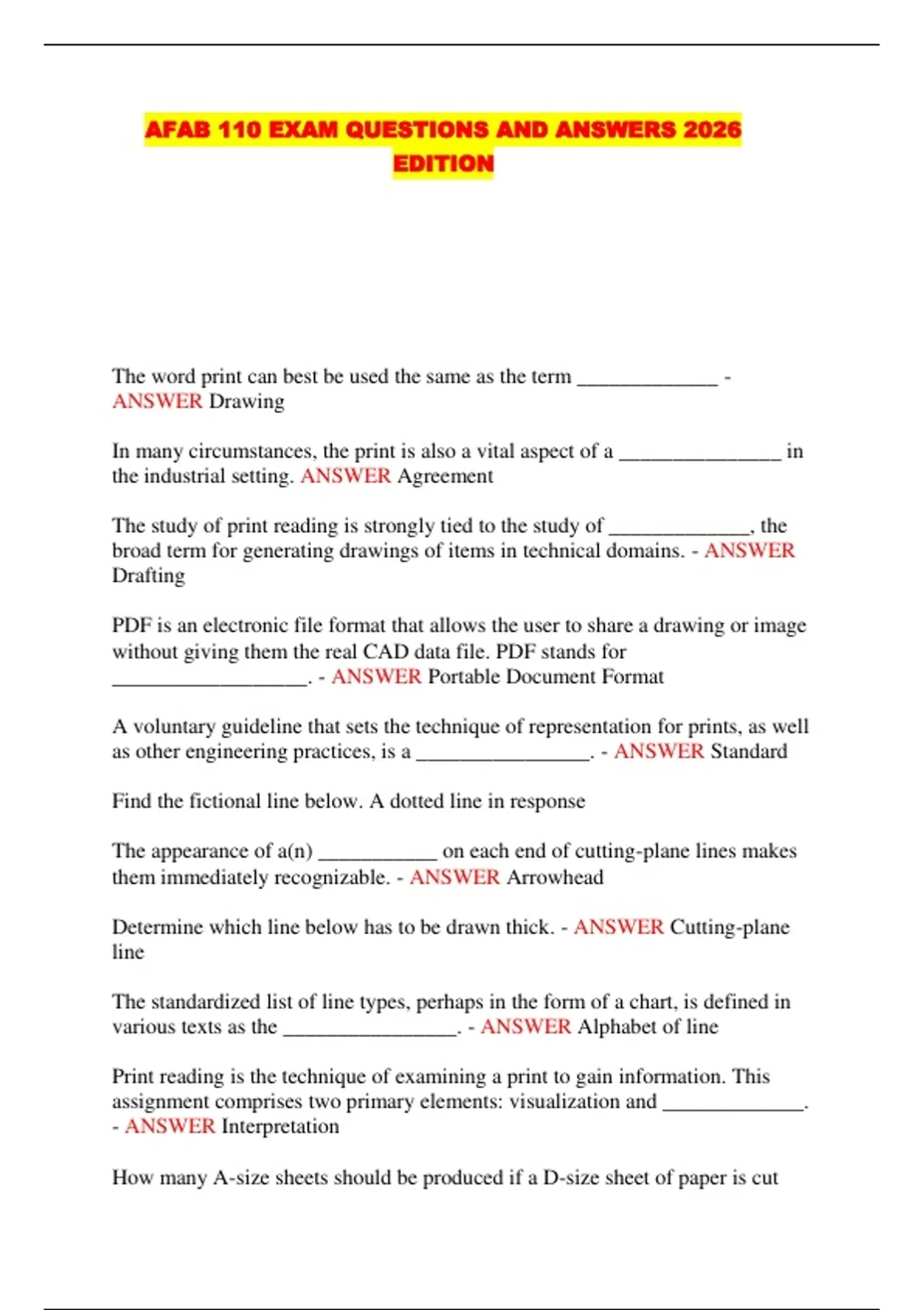 AFAB 110 EXAM QUESTIONS AND ANSWERS 2026
