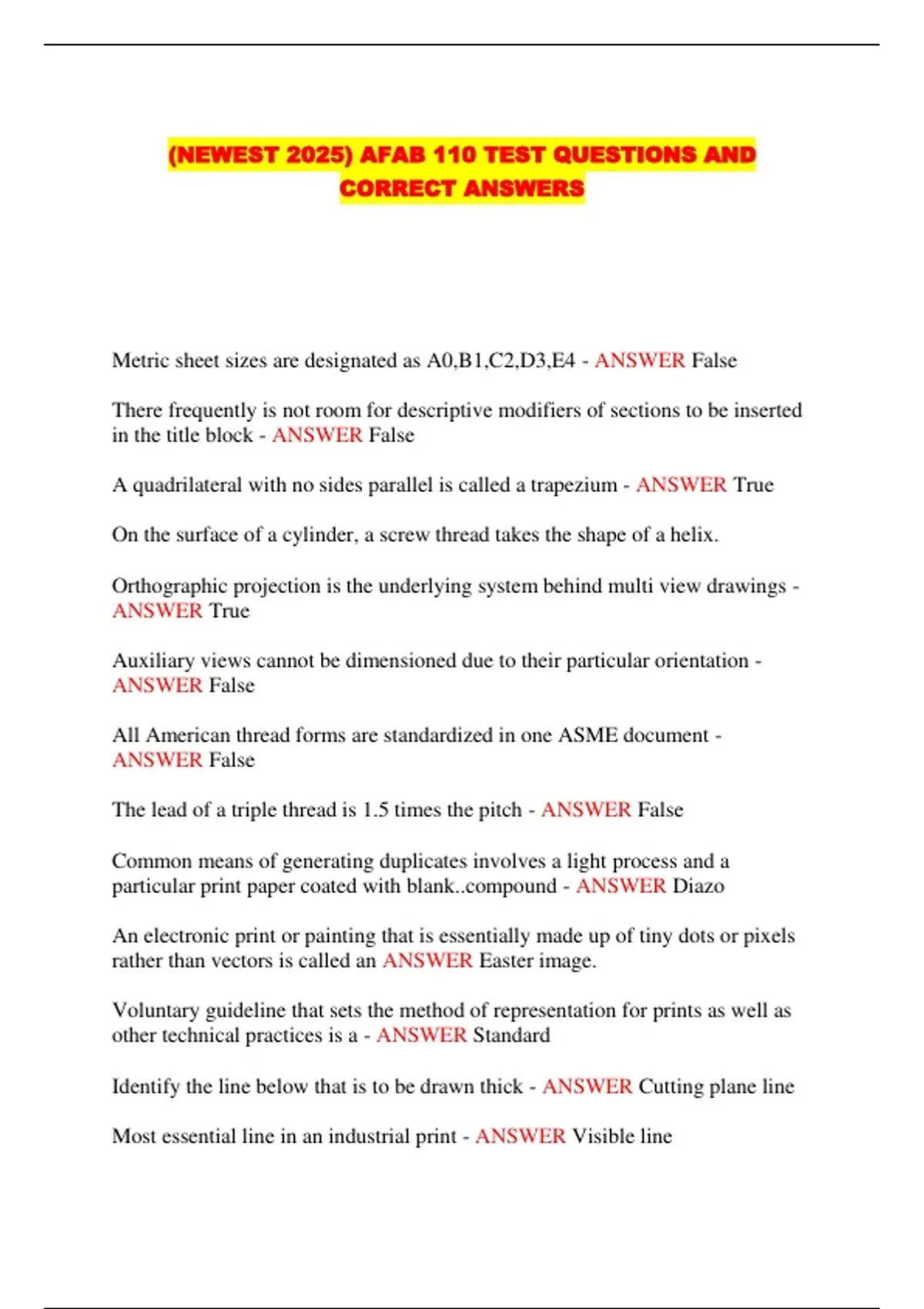 (NEWEST 2025) AFAB 110 TEST QUESTIONS AND