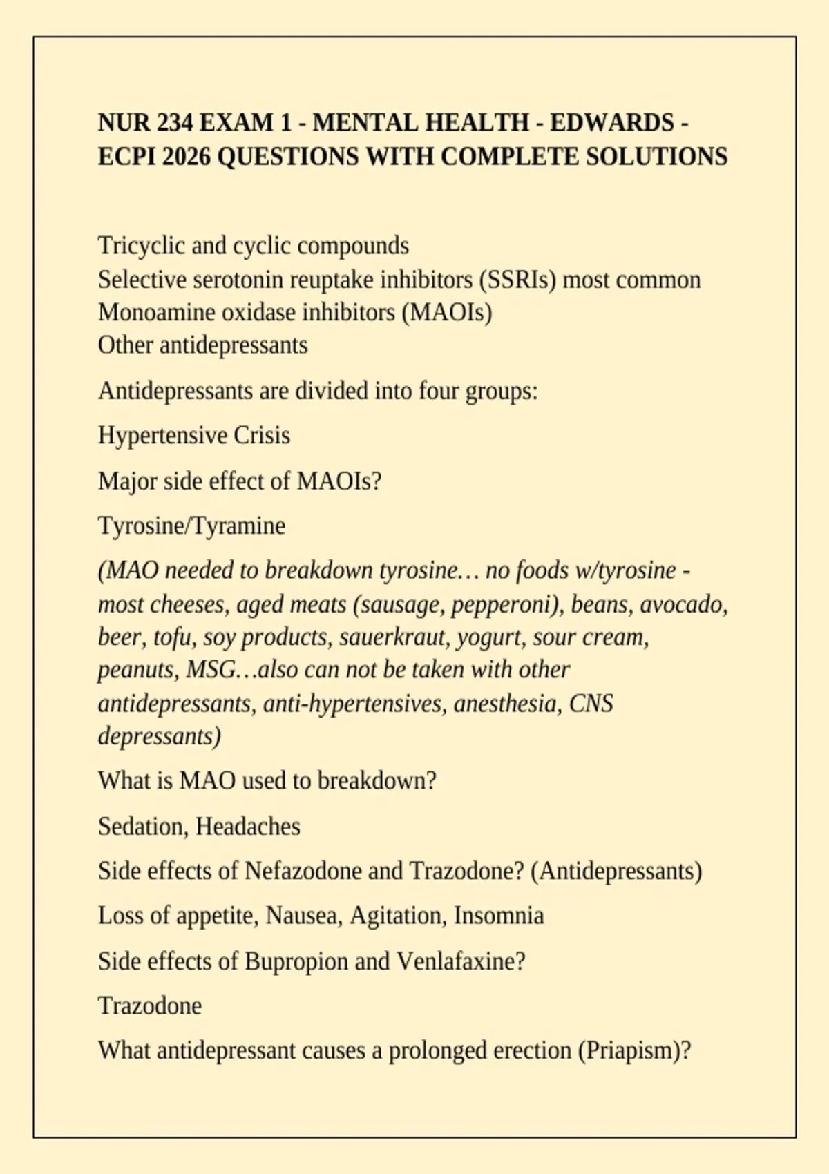 (MAO needed to breakdown tyrosine… no foods w/tyrosine -