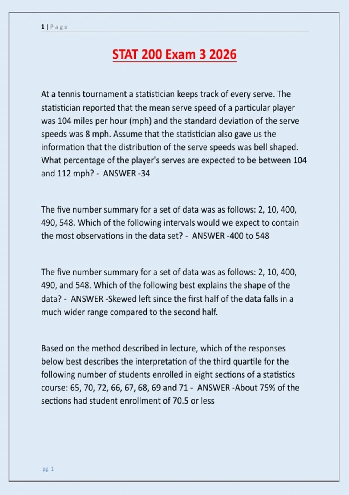 STAT 200 Exam 3 2026