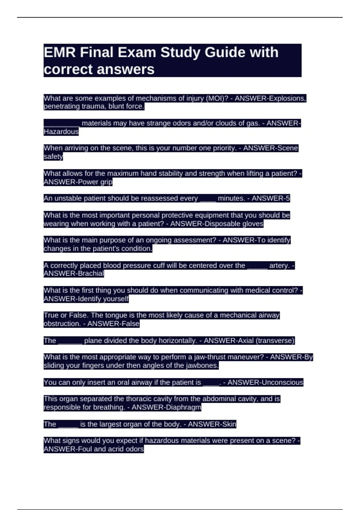 You can only insert an oral airway if the patient is ____. - ANSWER-Unconscious