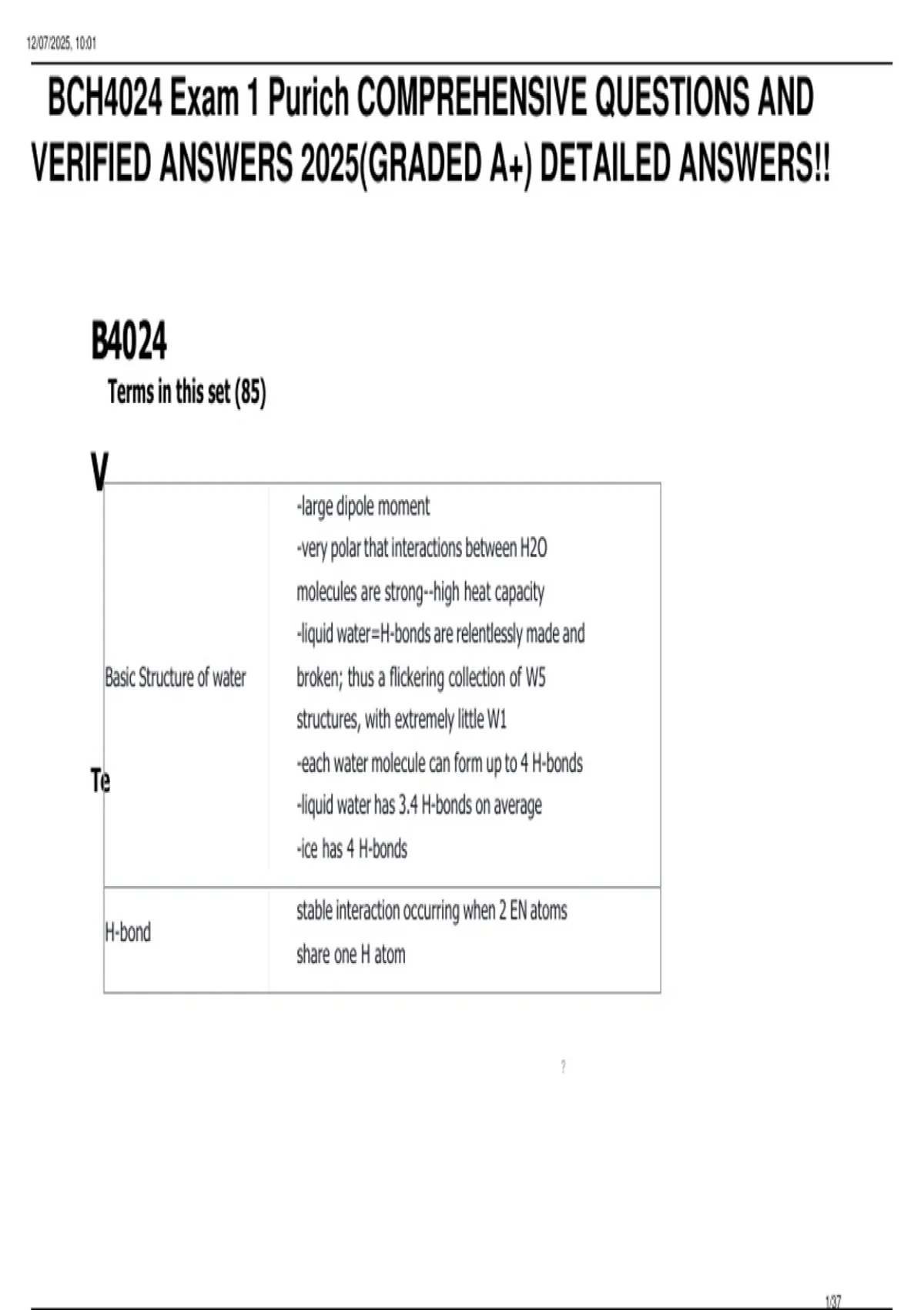BCH4024 Exam 1 Purich COMPREHENSIVE QUESTIONS AND