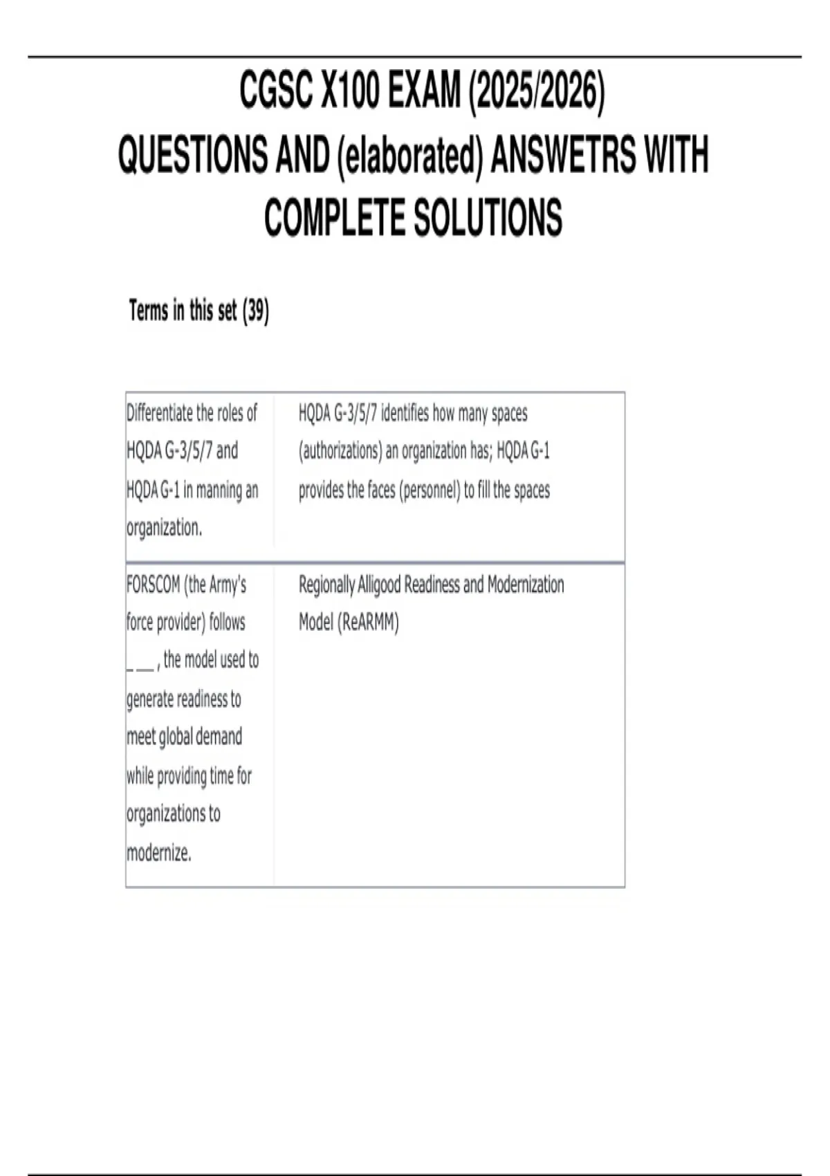 CGSC X100 Exam – Questions and Answers with Complete Solutions | Full Course Review