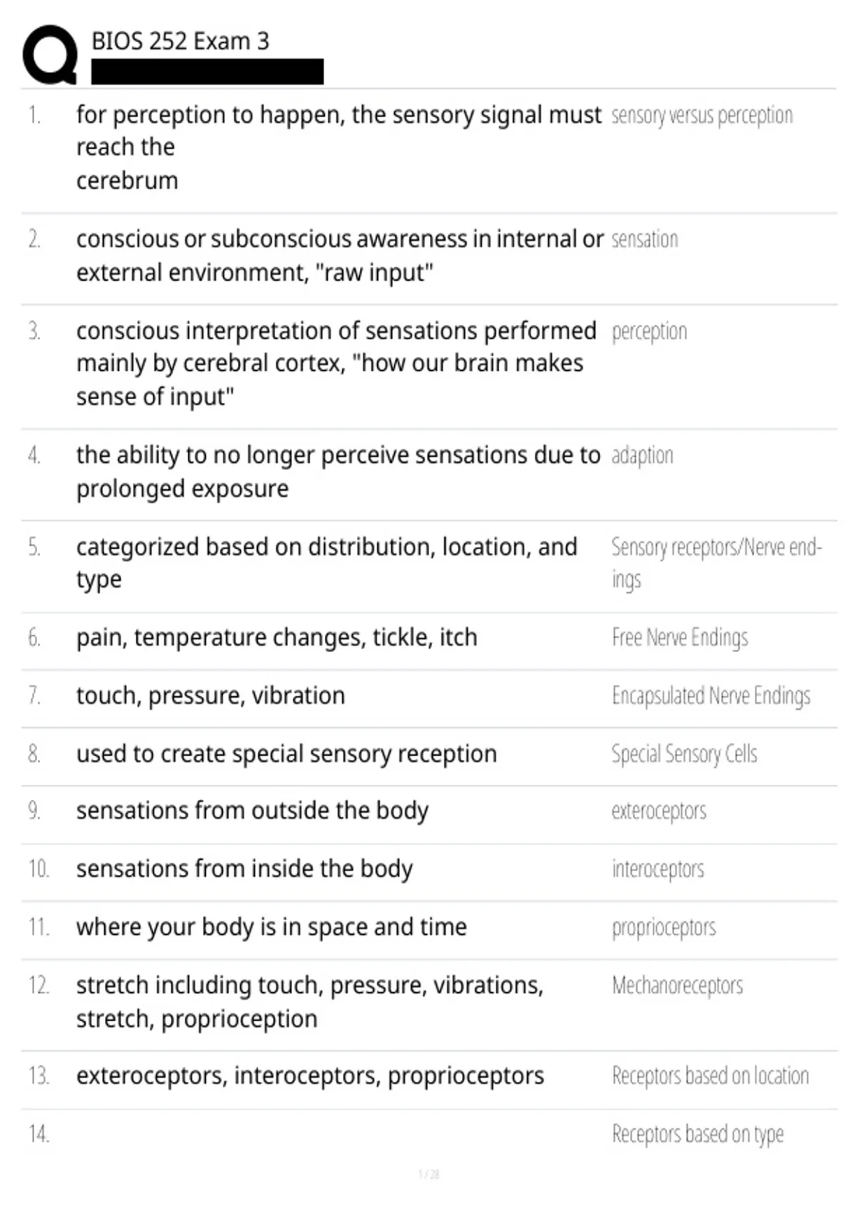 9. sensations from outside the body exteroceptors