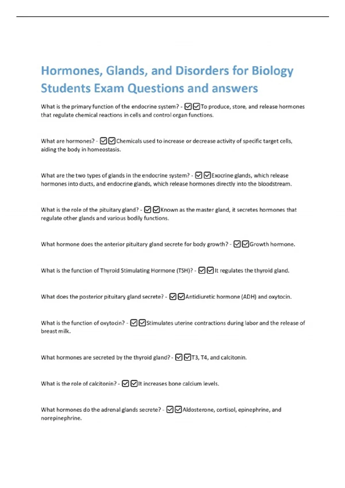 Hormones, Glands, and Disorders for Biology Students Exam Questions and answers