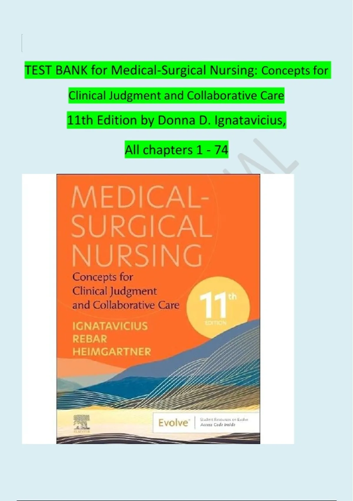 TEST BANK for Medical-Surgical Nursing: Concepts for Clinical Judgment and Collaborative Care 11th Edition by Donna D. Ignatavicius, All chapters 1 - 74