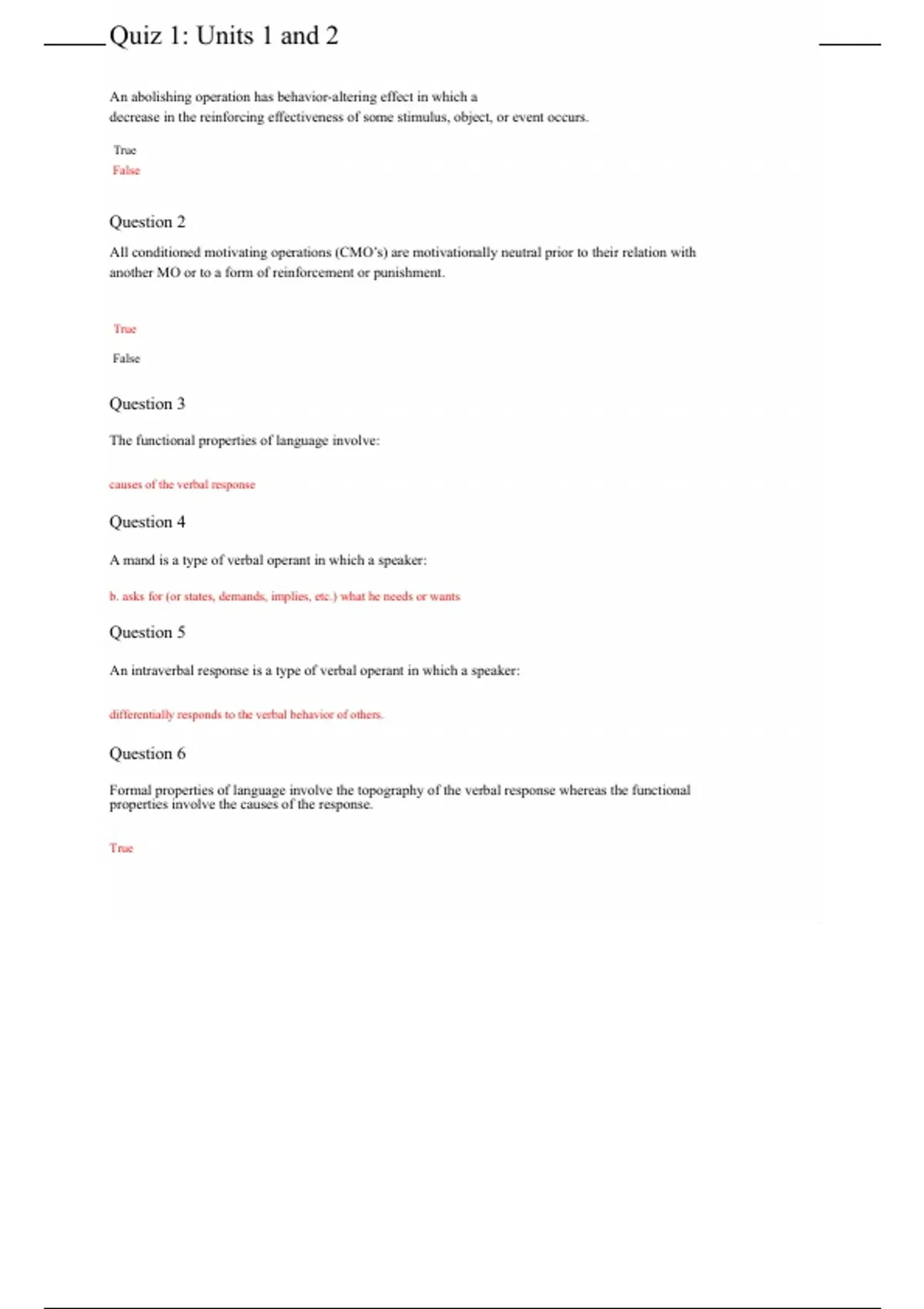 Quiz 1: Units 1 and 2