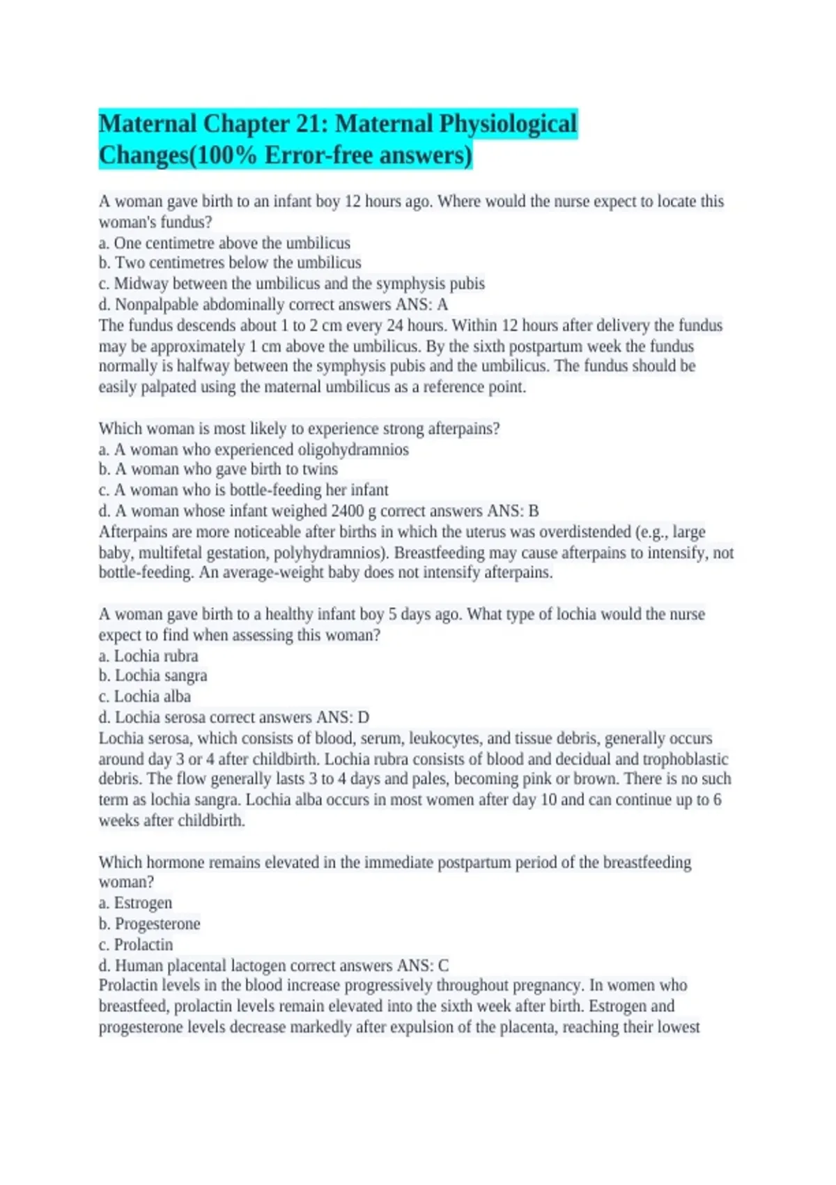 d. A woman whose infant weighed 2400 g correct answers ANS: B