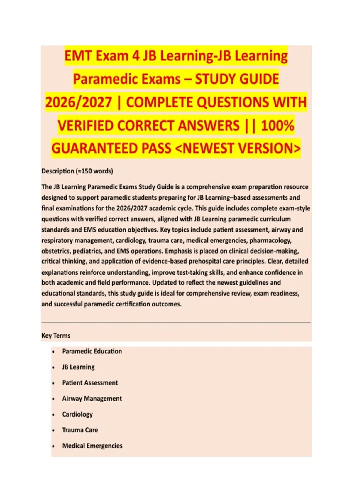 designed to support paramedic students preparing for JB Learning–based assessments and