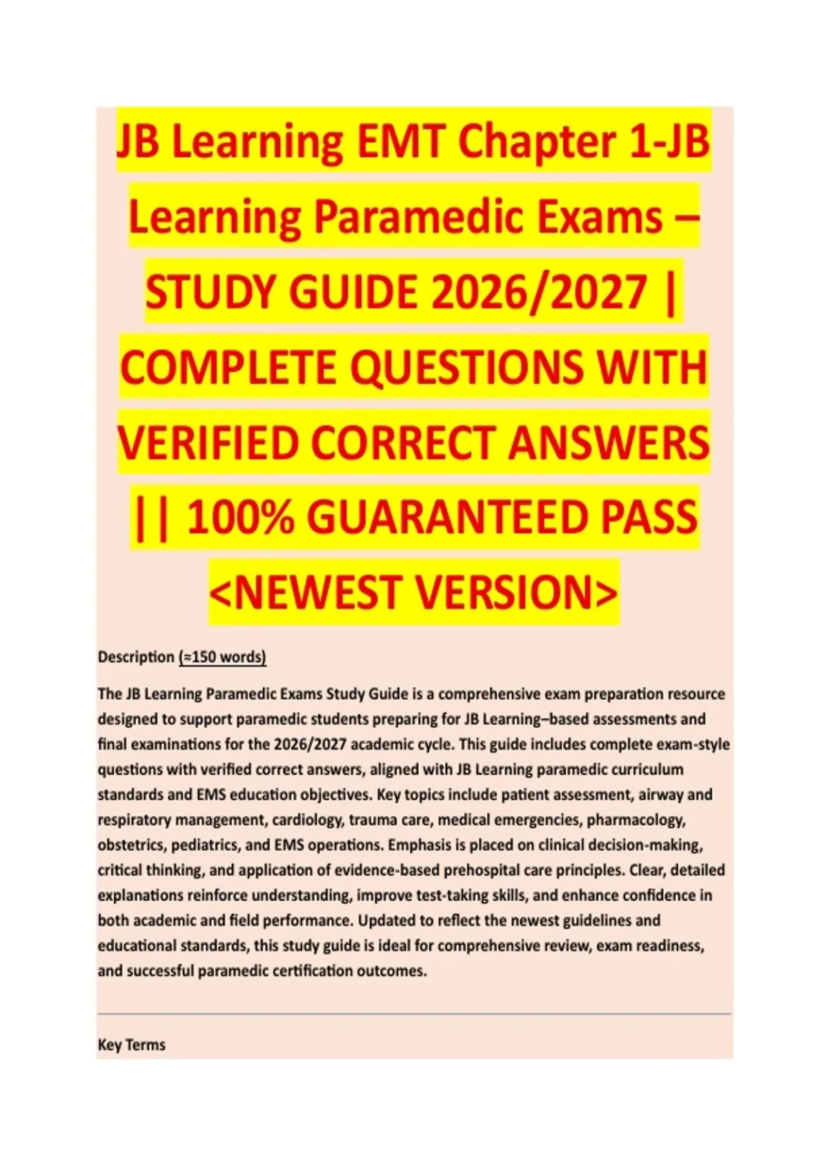 questions with verified correct answers, aligned with JB Learning paramedic curriculum