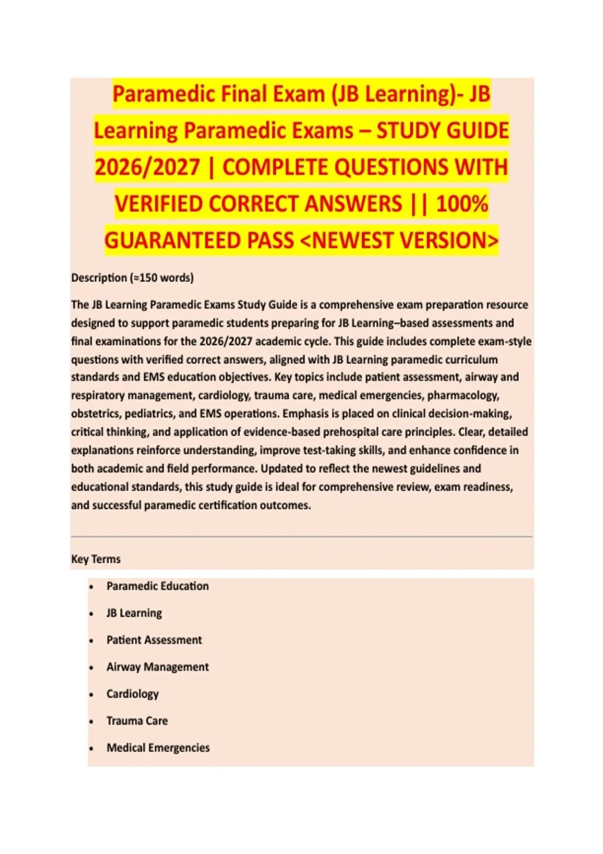 designed to support paramedic students preparing for JB Learning–based assessments and