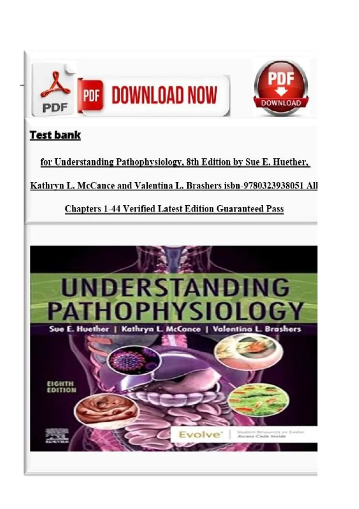 Test Bank for Understanding Pathophysiology, 8th Edition by Sue E. Huether, Kathryn L. McCance and Valentina L. Brashers isbn-9780323938051 All Chapters 1-44 Verified Latest Edition in the field