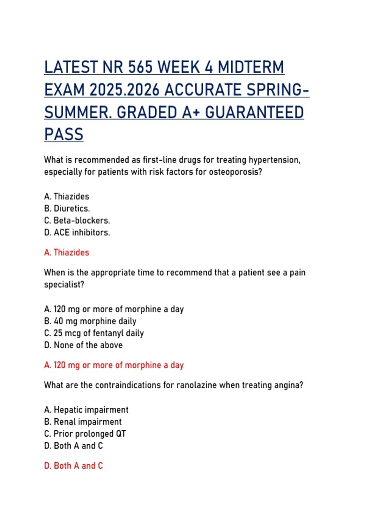 LATEST NR 565 WEEK 4 MIDTERM EXAM 2025.2026 ACCURATE SPRING SUMMER. GRADED A+ GUARANTEED PASS