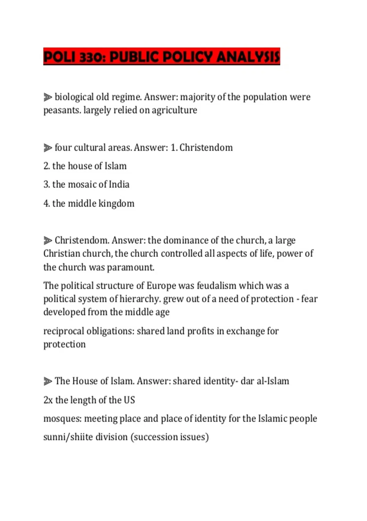 ⫸ four cultural areas. Answer: 1. Christendom