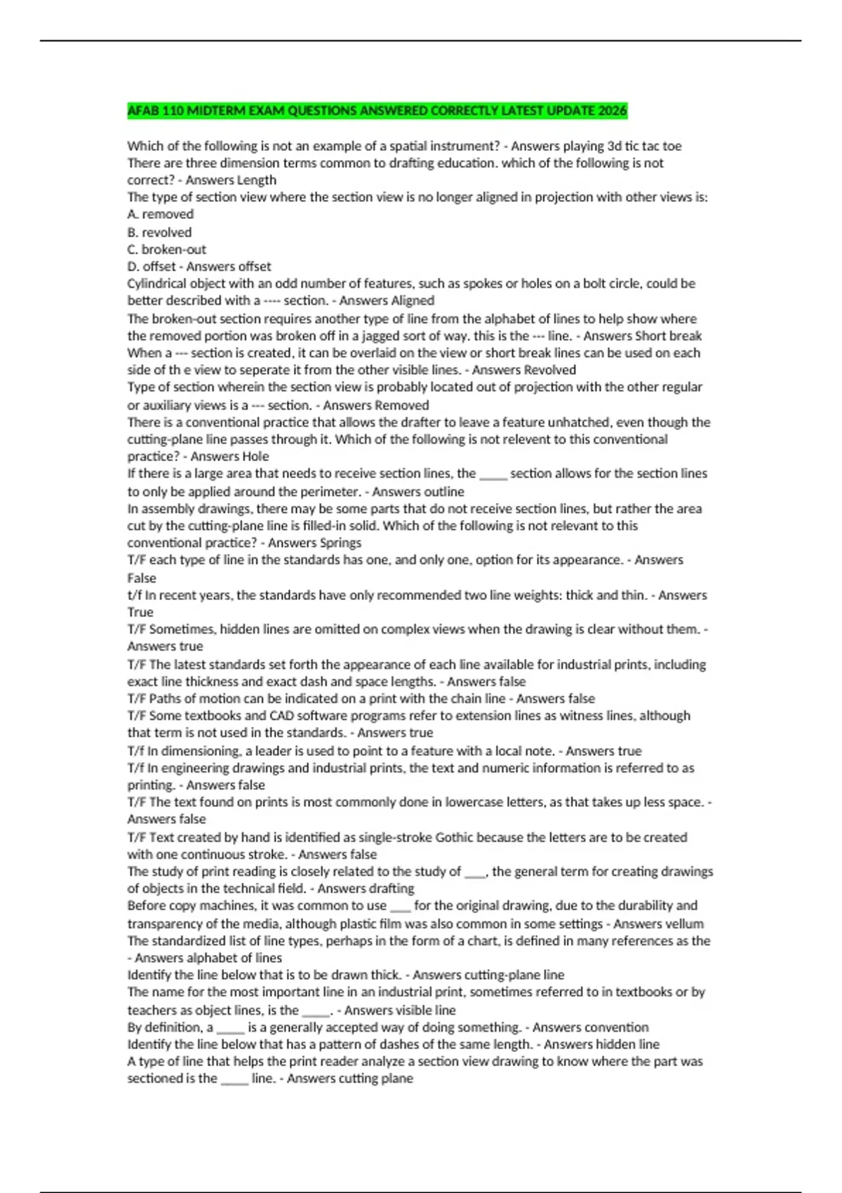 Answers false
