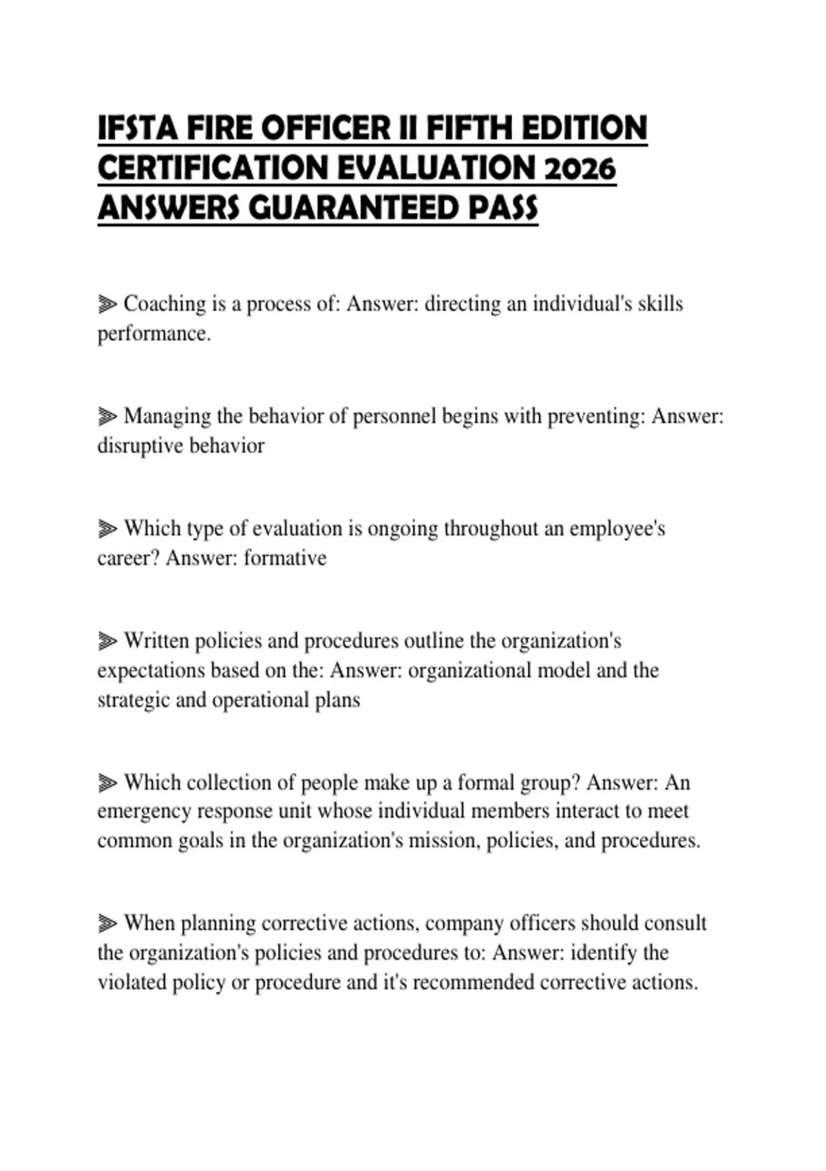 IFSTA FIRE OFFICER II FIFTH EDITION CERTIFICATION EVALUATION 2026 ANSWERS GUARANTEED PASS