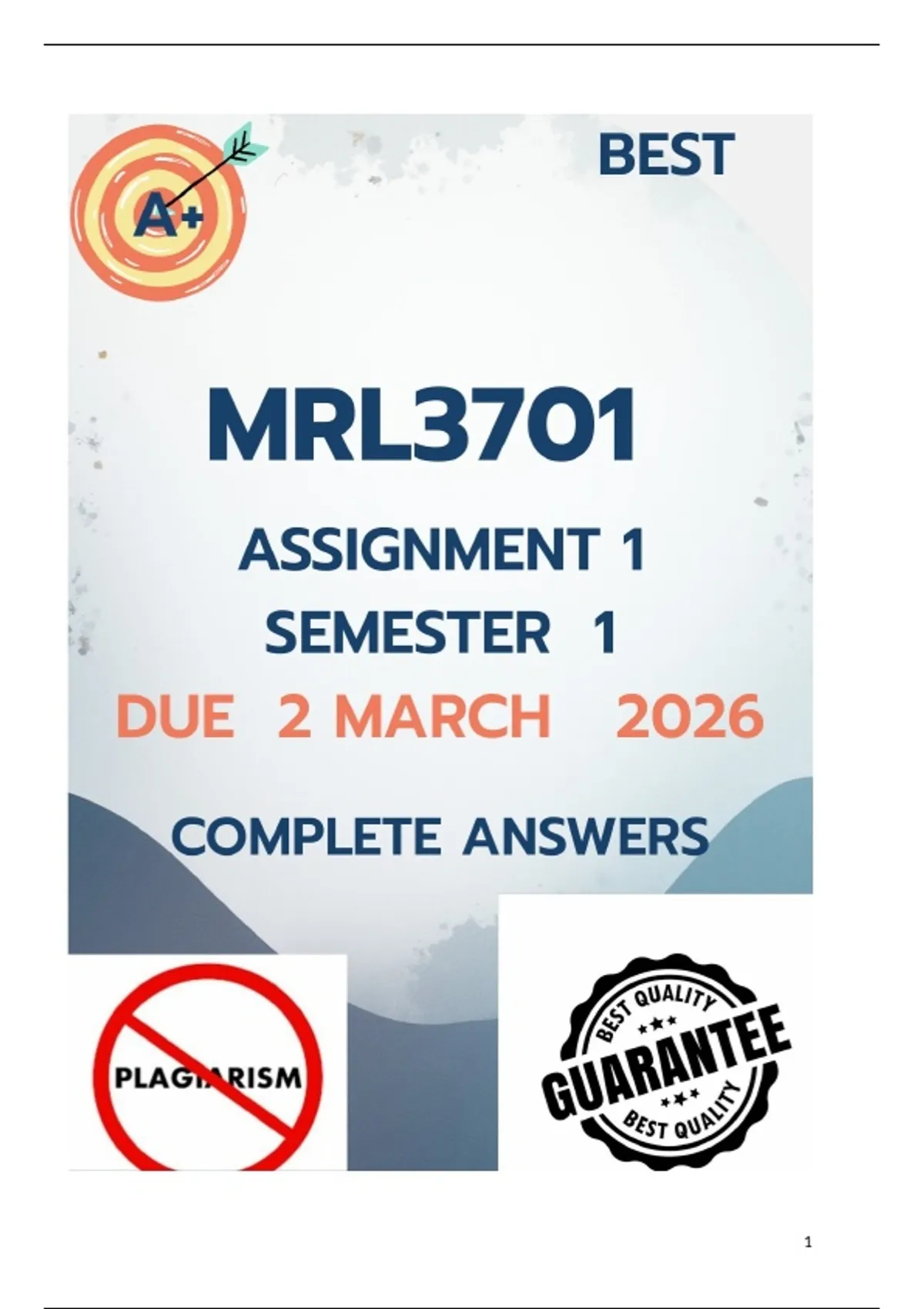 MRL3701 Assignment 1 Semester 1 2026 - DUE 2 March 2026 [COMPLETE ANSWERS];100%TRUSYED WORKING.