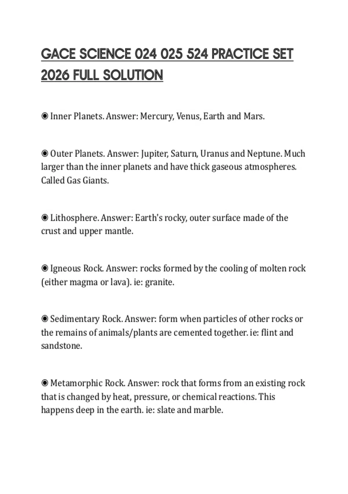 GACE SCIENCE PRACTICE SET 2026 FULL SOLUTION