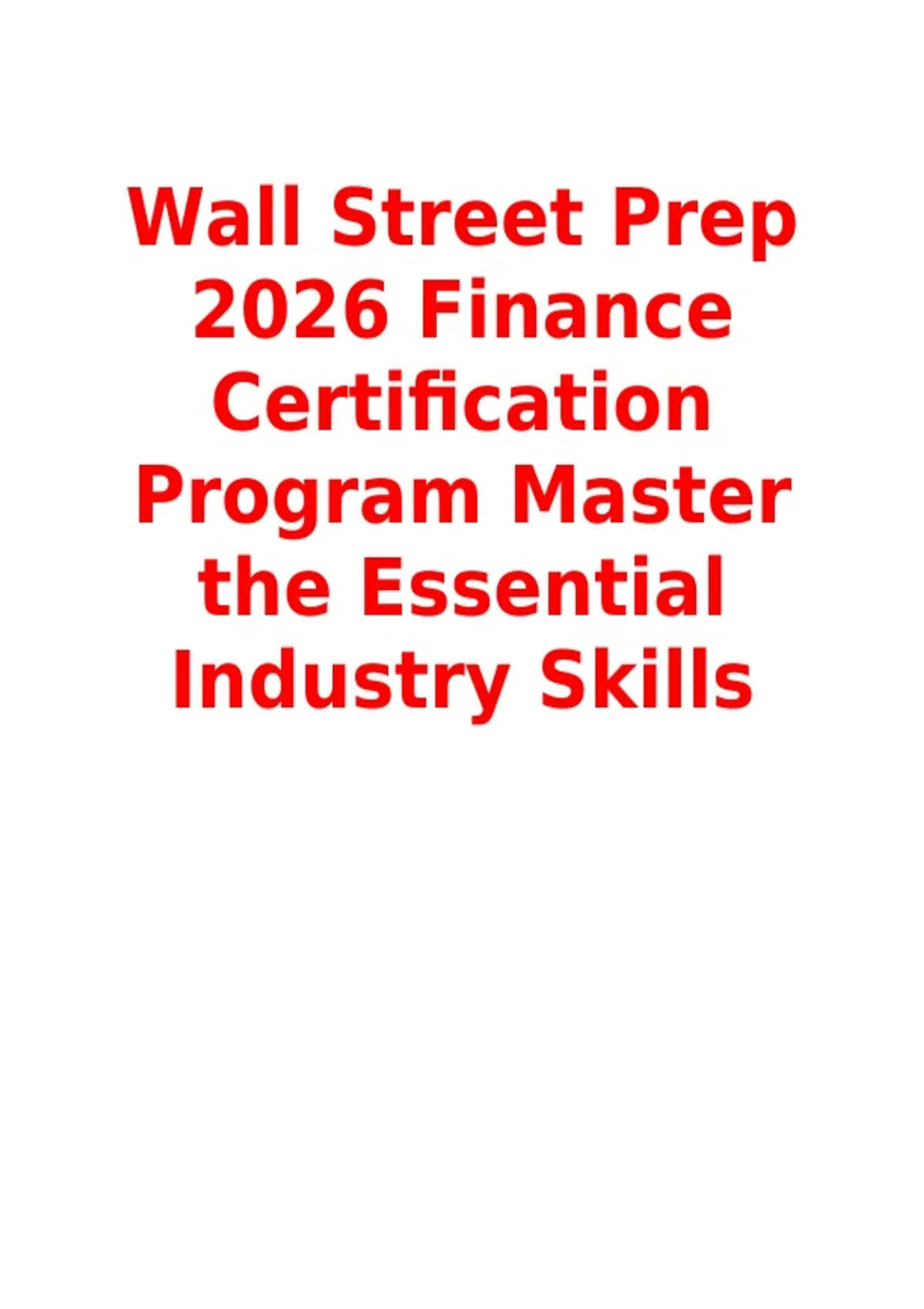 2026 Finance