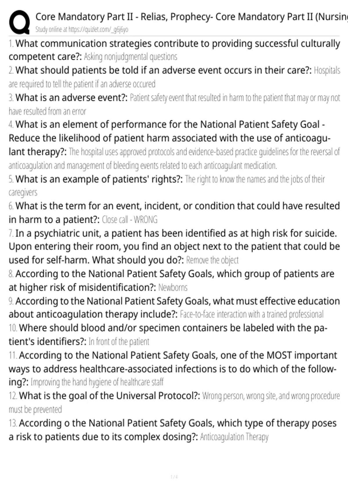 Core Mandatory Part II - Relias, Prophecy- Core Mandatory Part II (Nursing
