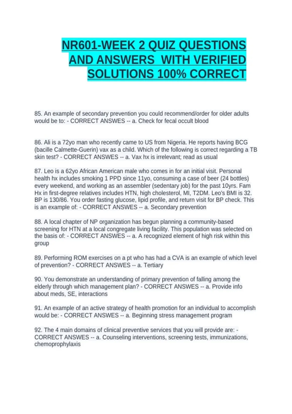 is an example of: - CORRECT ANSWES -- a. Secondary prevention