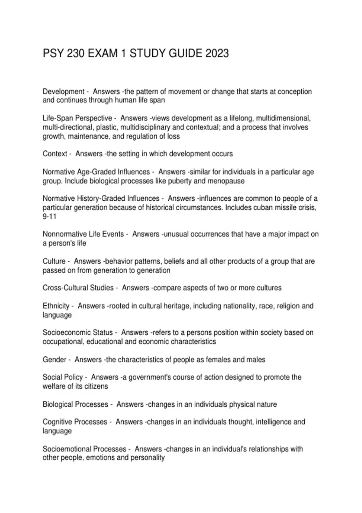 Normative Age-Graded Influences - Answers -similar for individuals in a particular age