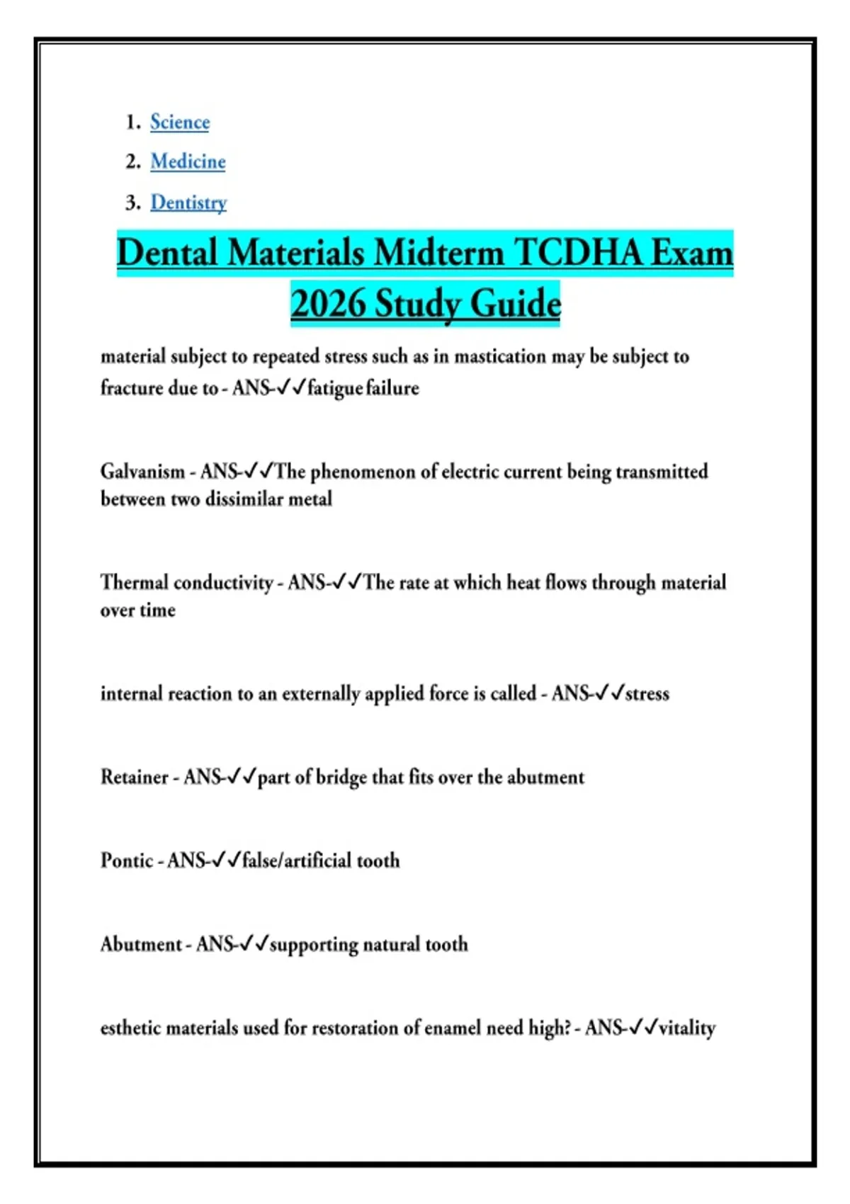 Dental Materials Midterm TCDHA Exam 2026 Study Guide