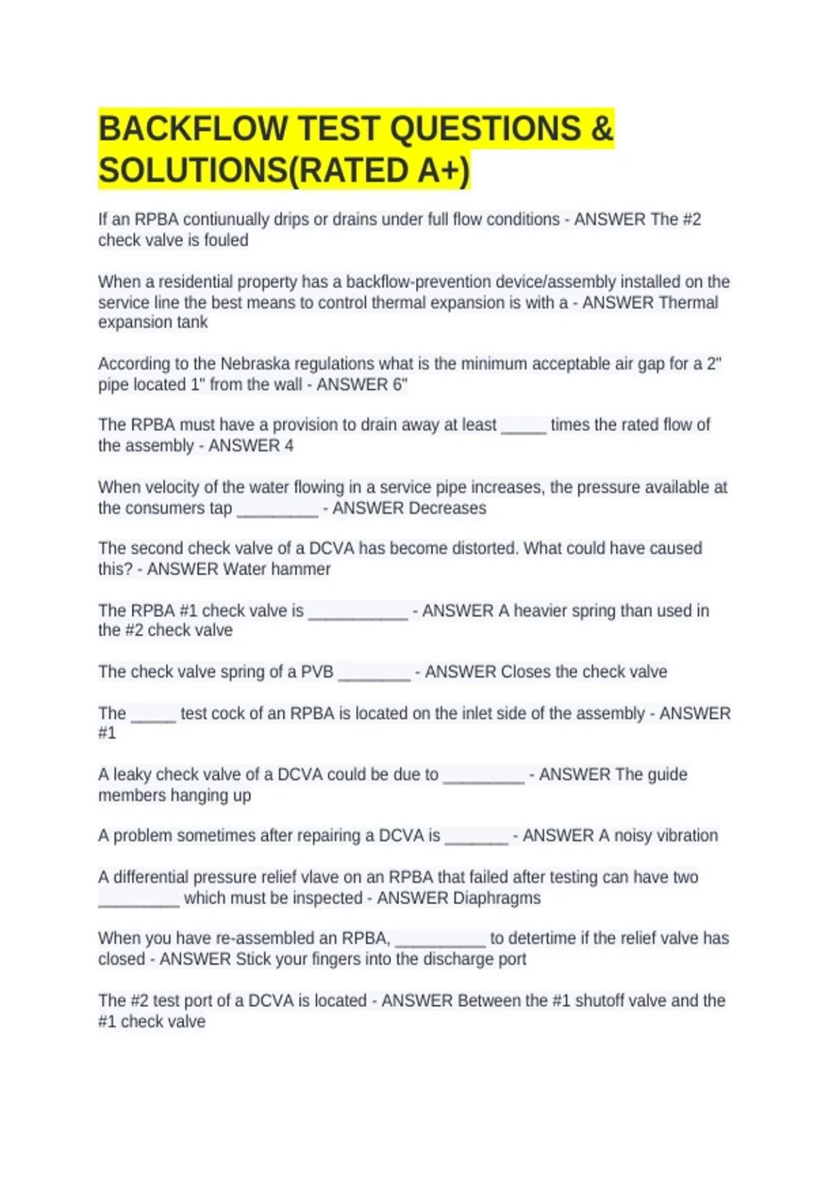 of backflow preventers, and record of repairs of back flow preventers - ANSWER