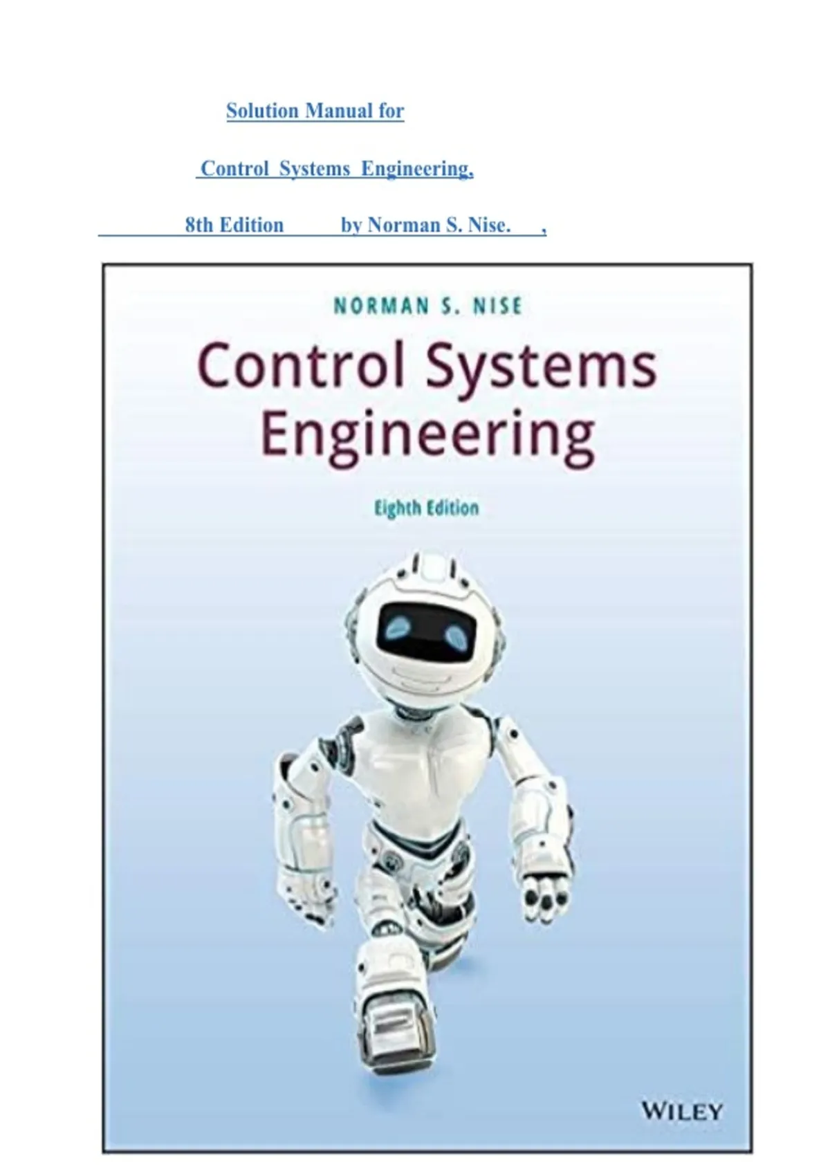 8th Edition by Norman S. Nise. ,
